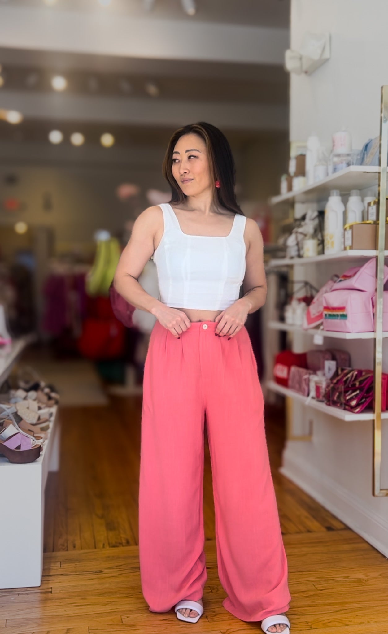 BOTANICAL LINEN BACK ELASTIC TROUSERS 70% RAYON 30% LINEN