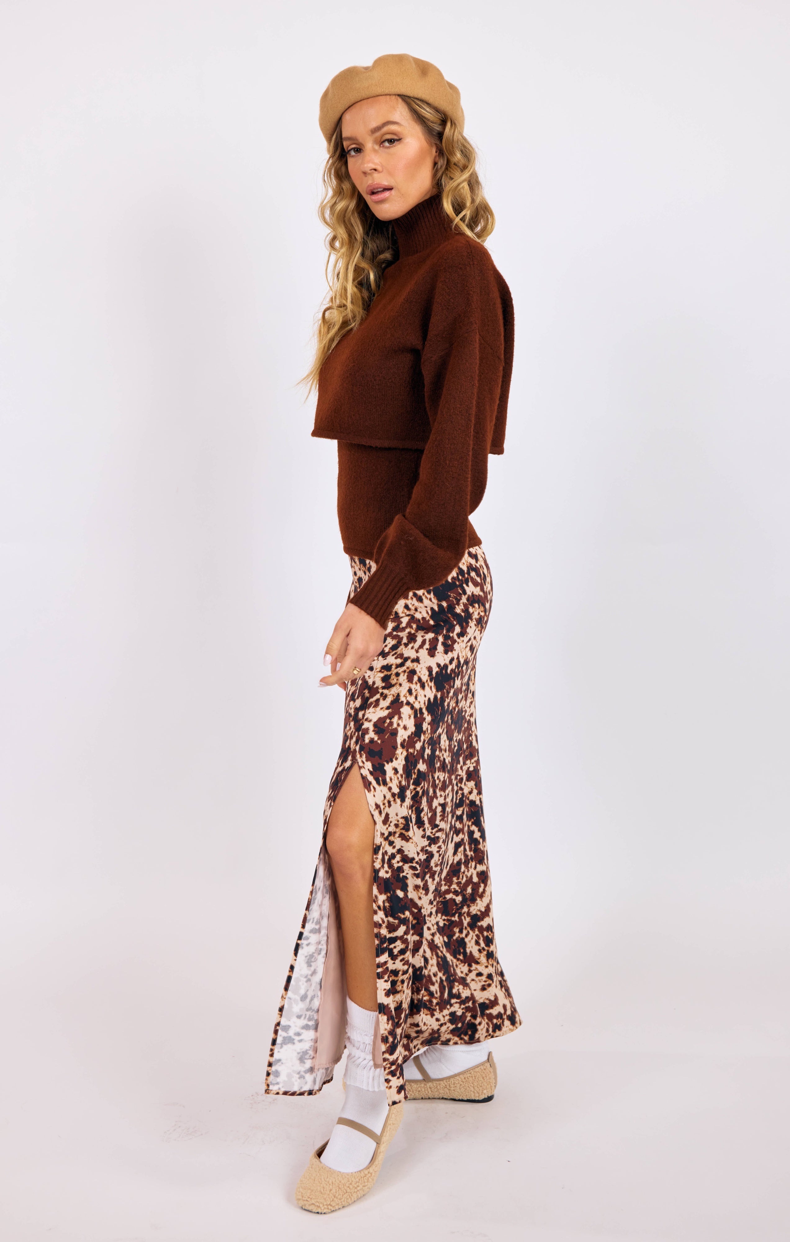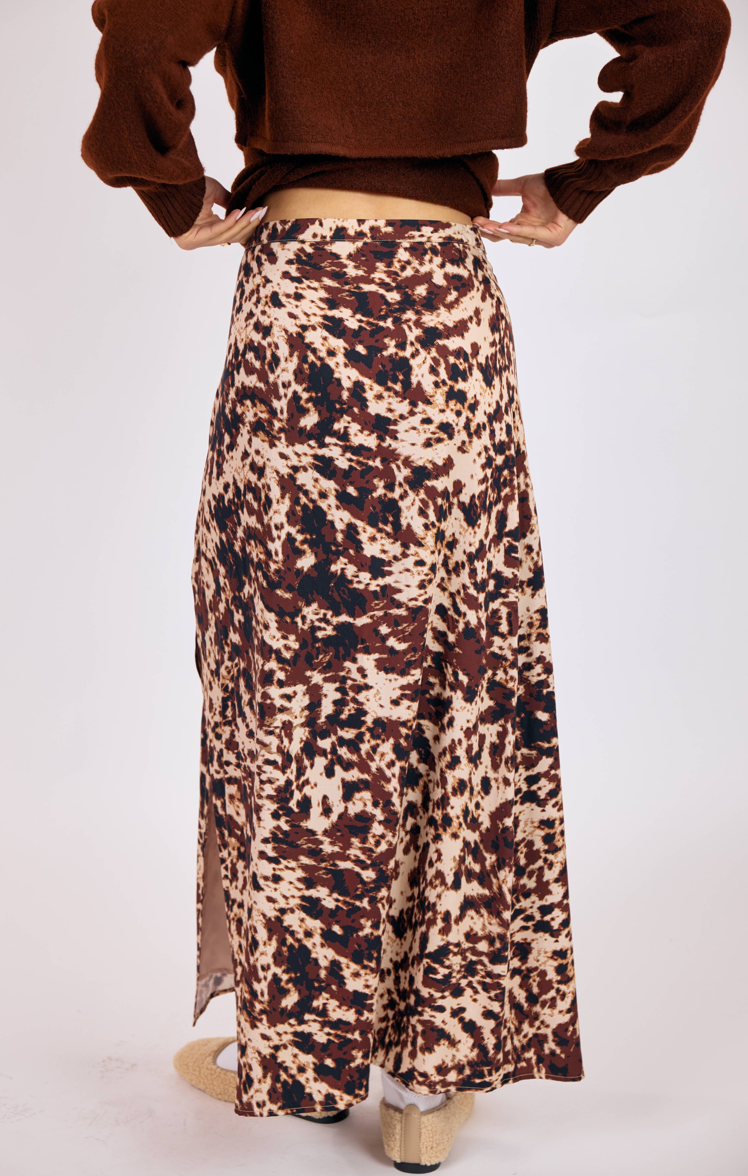 Unleash your bold side with the Wild Mustang Maxi Skirt, designed in a striking brown multi-animal-inspired print. The sleek, flowy silhouette skims the body beautifully, offering both comfort and elegance in one effortless piece. Perfect for pairing with chunky knits, fitted tops, or a leather jacket, this skirt easily transitions from casual daytime styling to chic evening looks.