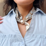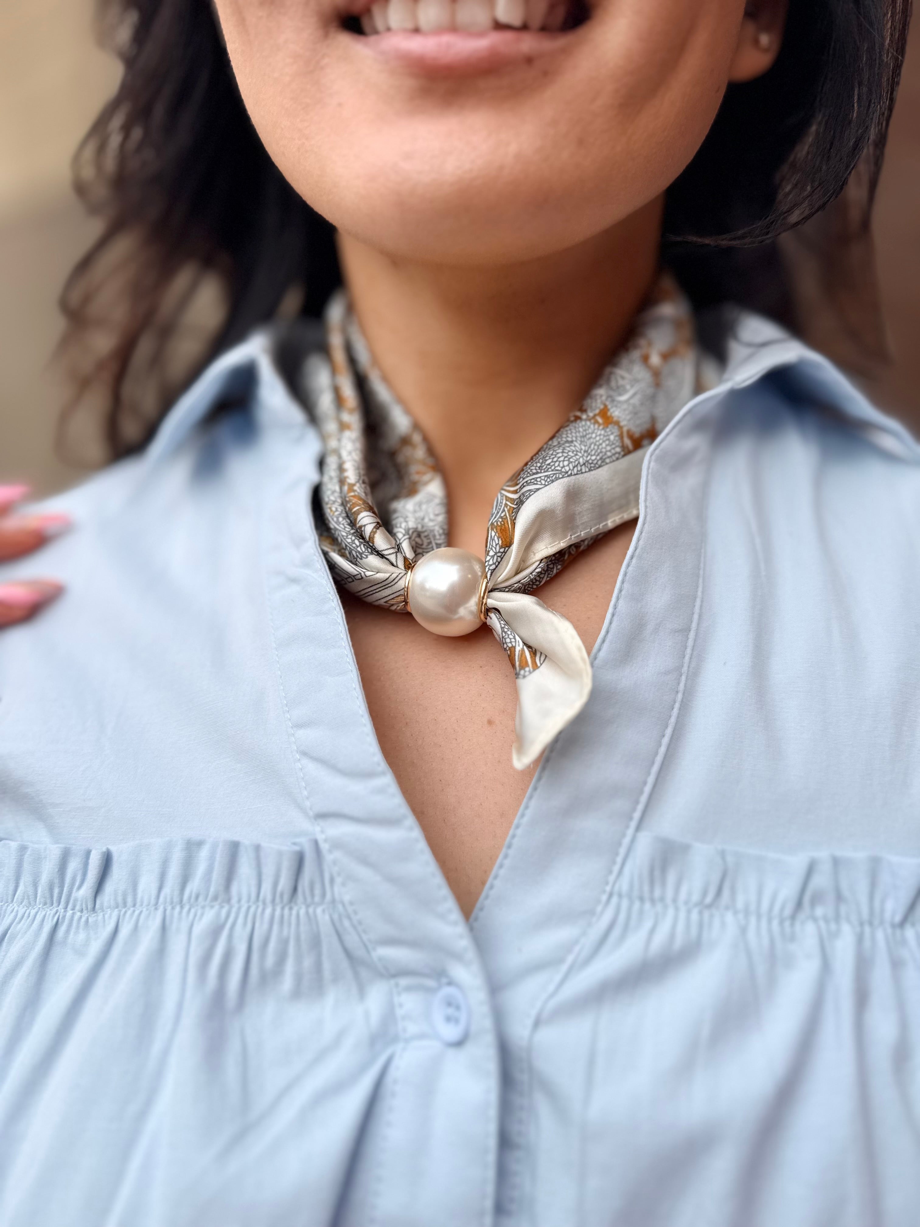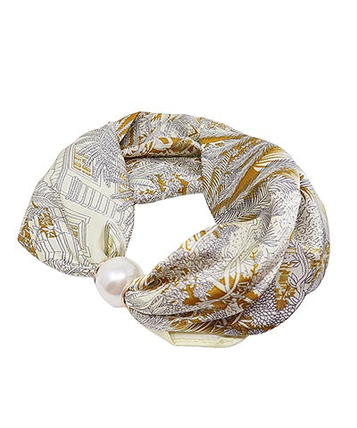 Brown/Gray Pearl Magnet Floral Print Scarf Necklace