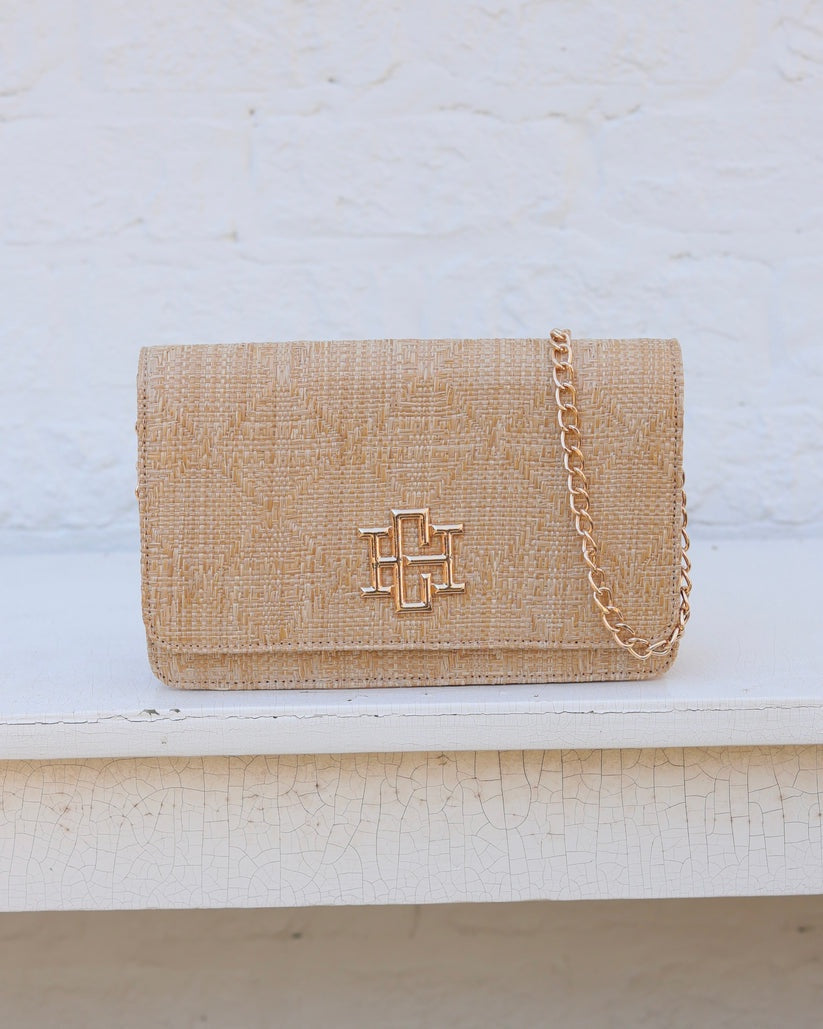 This elegant handbag is the perfect choice for dressy events or casual outings. It features a straw fabric and a magnetic front flap. The interior is designed for ultimate organization with credit card slots, an open roomy section, and a large zippered section. The comfortable crossbody strap can easily be removed to carry as a clutch as well.