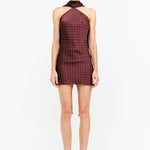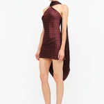 Make a sophisticated statement in the Burgundy Penny Dress. This polka dot mini slip bias dress features a flattering halter neckline, figure-skimming silhouette, and an elegant matching scarf for added flair. Perfect for cocktail parties or special occasions, it blends timeless charm with modern elegance.