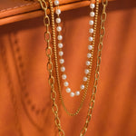 Cadeaux 18K Gold Stacked Pearl Chain Necklace