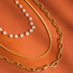 Elevate your style with the Cadeaux 18K Gold Non-Tarnish Stacked Pearl Chain Necklace. Designed with lustrous pearls layered on a radiant gold chain, this piece exudes timeless sophistication and modern charm. Its non-tarnish 18K gold finish ensures lasting shine—perfect for dressing up your everyday look or adding elegance to any special occasion.