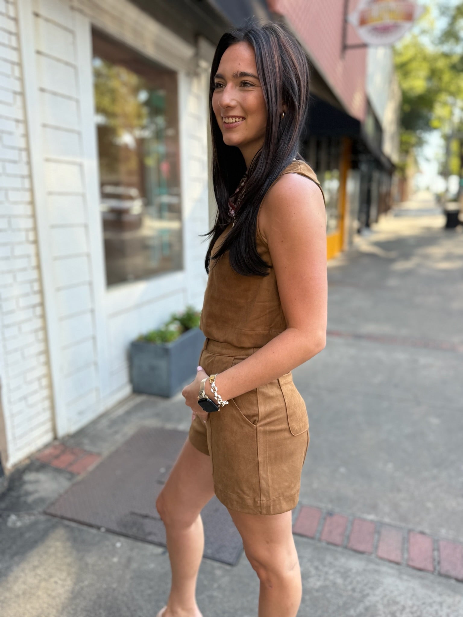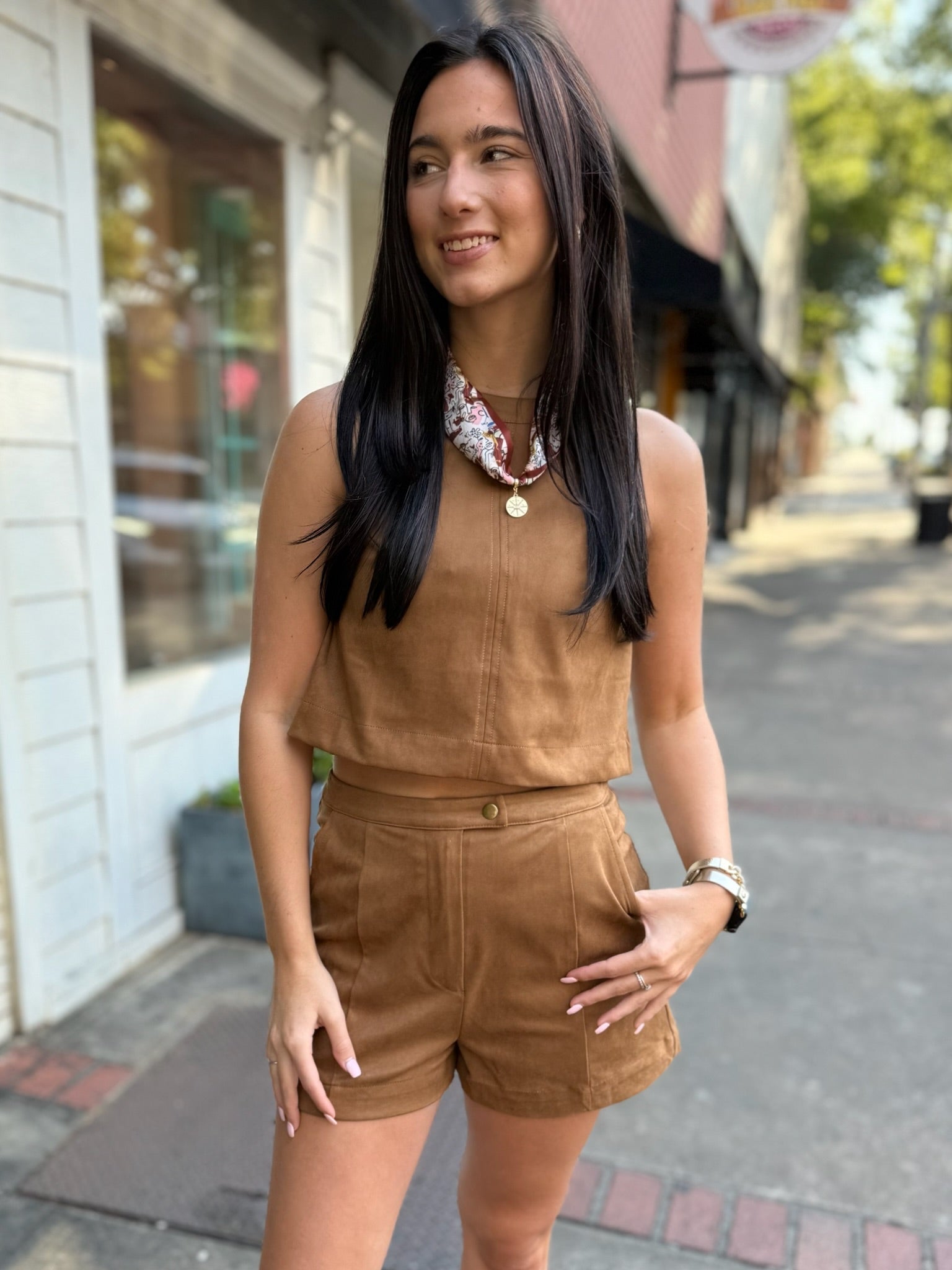 Camel Suede Sleeveless Crop Top