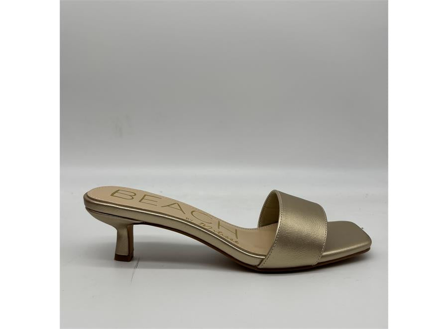 Vegan, single band kitten heel sandal.