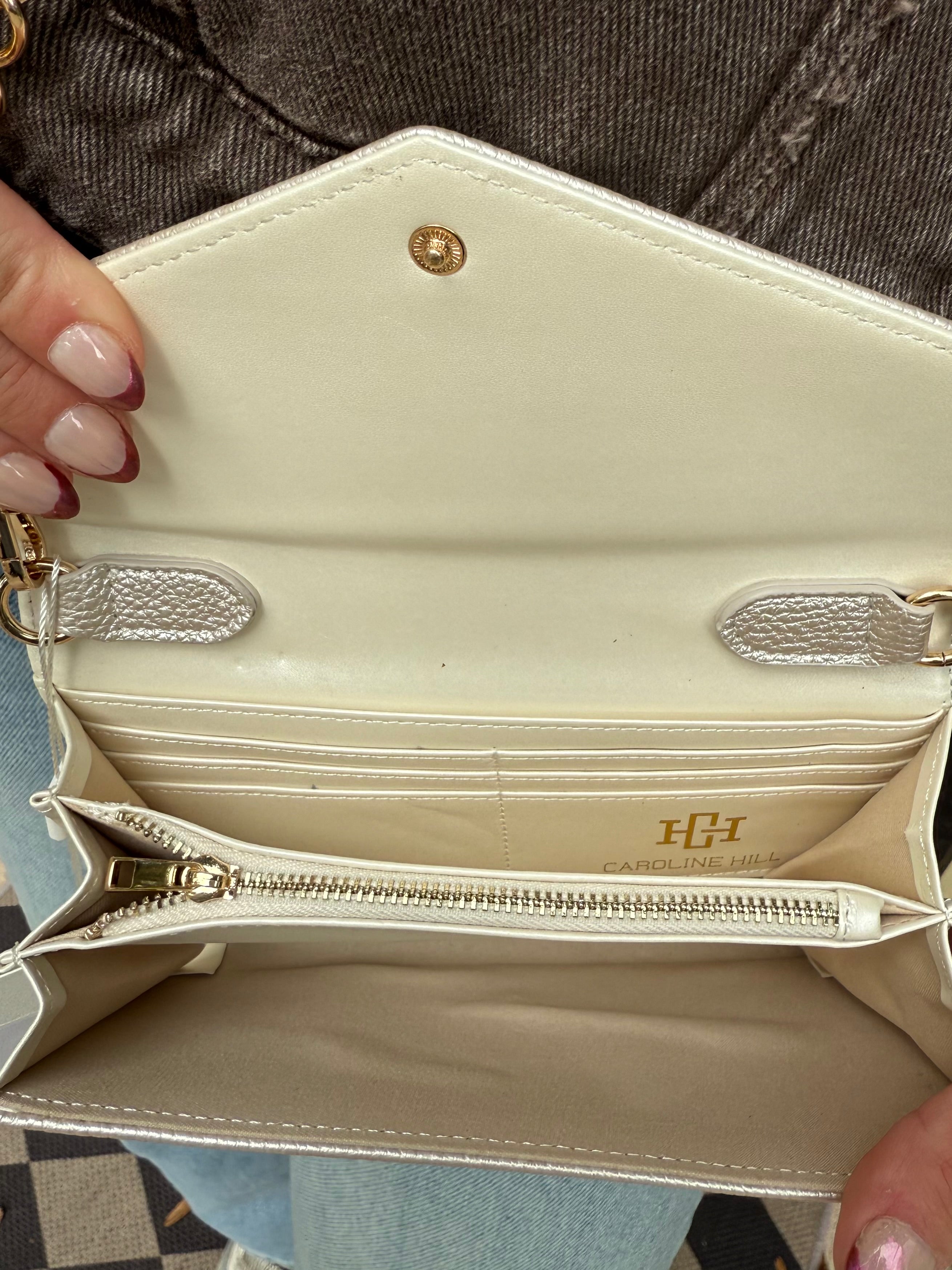 This playful wallet on chain doubles as a chic clutch with a removable chain for versatile wear. It boasts two compartments and credit card slots to keep your essentials organized. Big enough to fit your iPhone, it’s the perfect easy-to-grab bag for a night out or to toss inside your tote without any fuss.