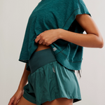 Seize the run in these so-flattering shorts, featuring a durable, water-resistant fabrication, built-in briefs and a knit high-rise waistband.