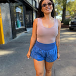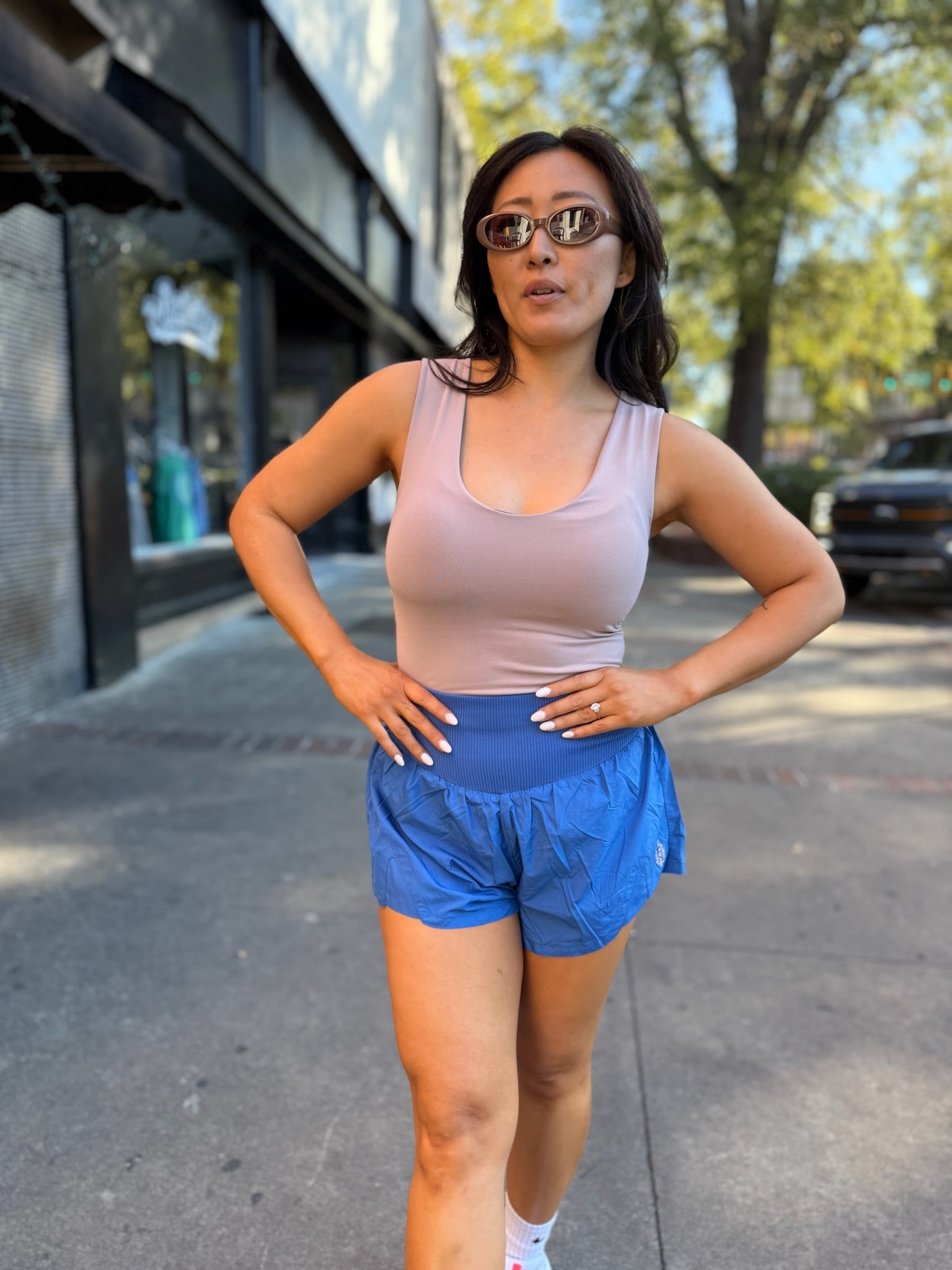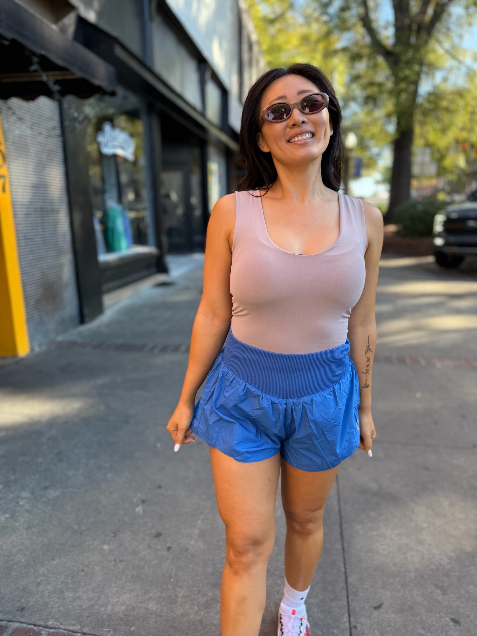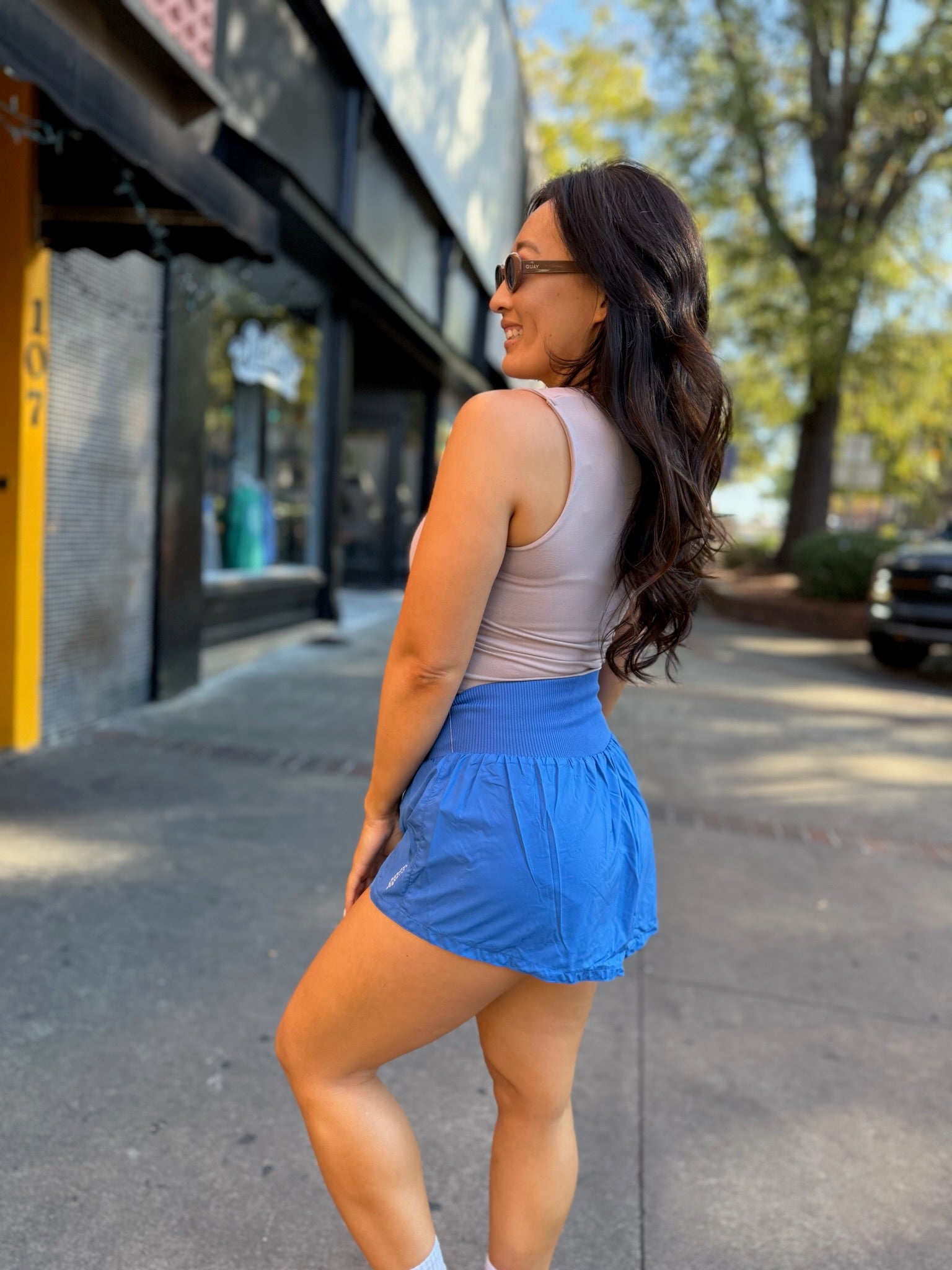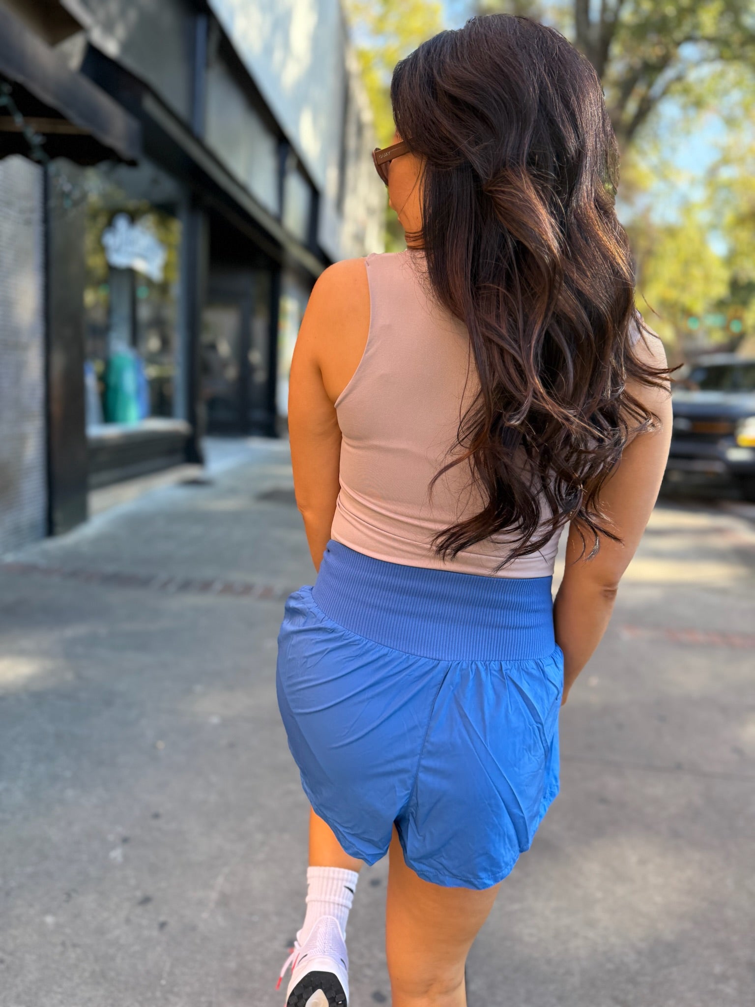 Seize the run in these so-flattering shorts, featuring a durable, water-resistant fabrication, built-in briefs and a knit high-rise waistband.