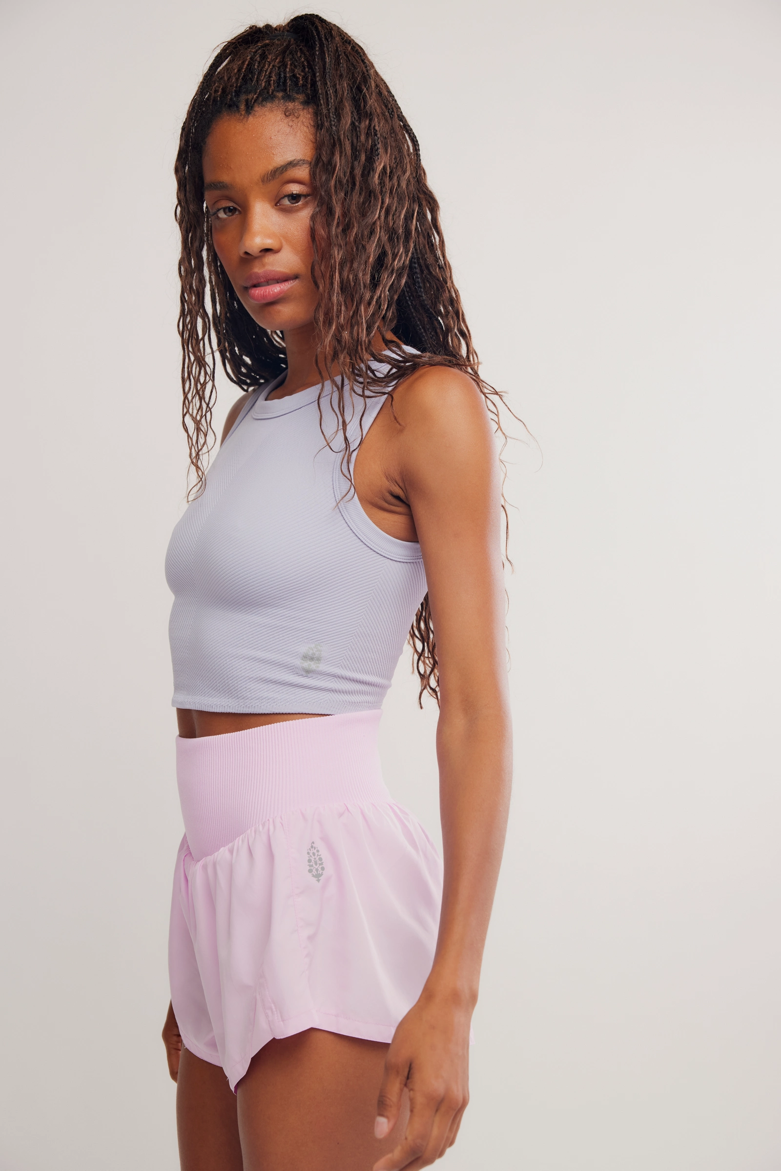 Seize the run in these so-flattering shorts, featuring a durable, water-resistant fabrication, built-in briefs, and a knit high-rise waistband.