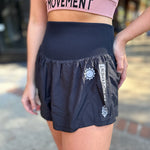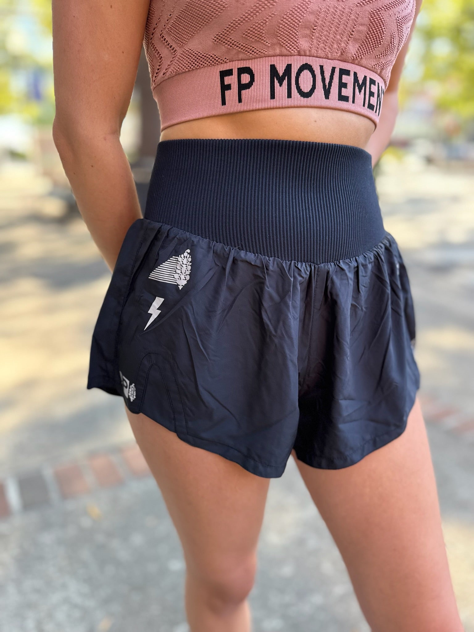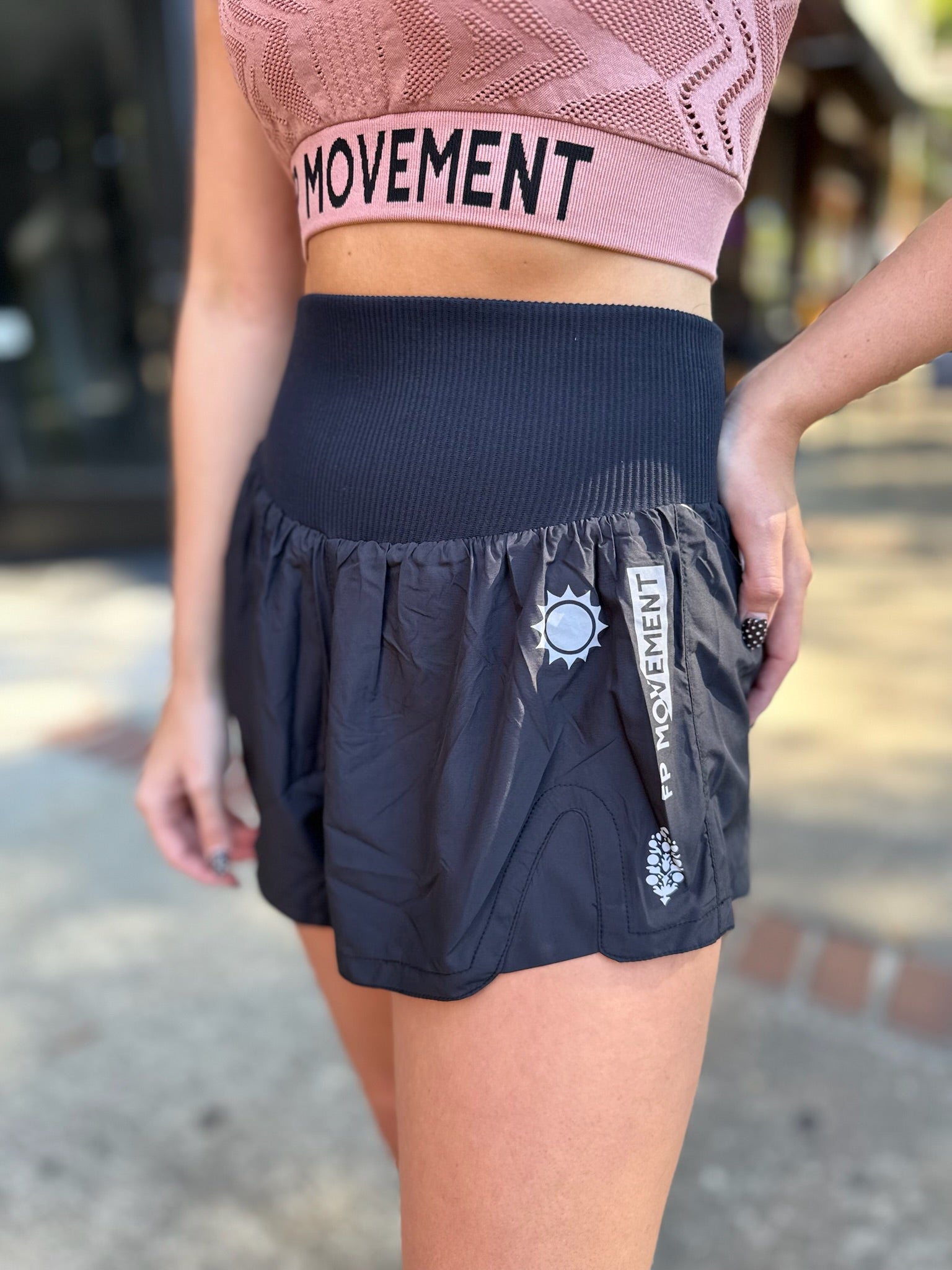 Seize the run in these so-flattering shorts featuring tattoo-inspired detailing at sides, a durable, water-resistant fabrication, built-in briefs and a knit high-rise waistband.