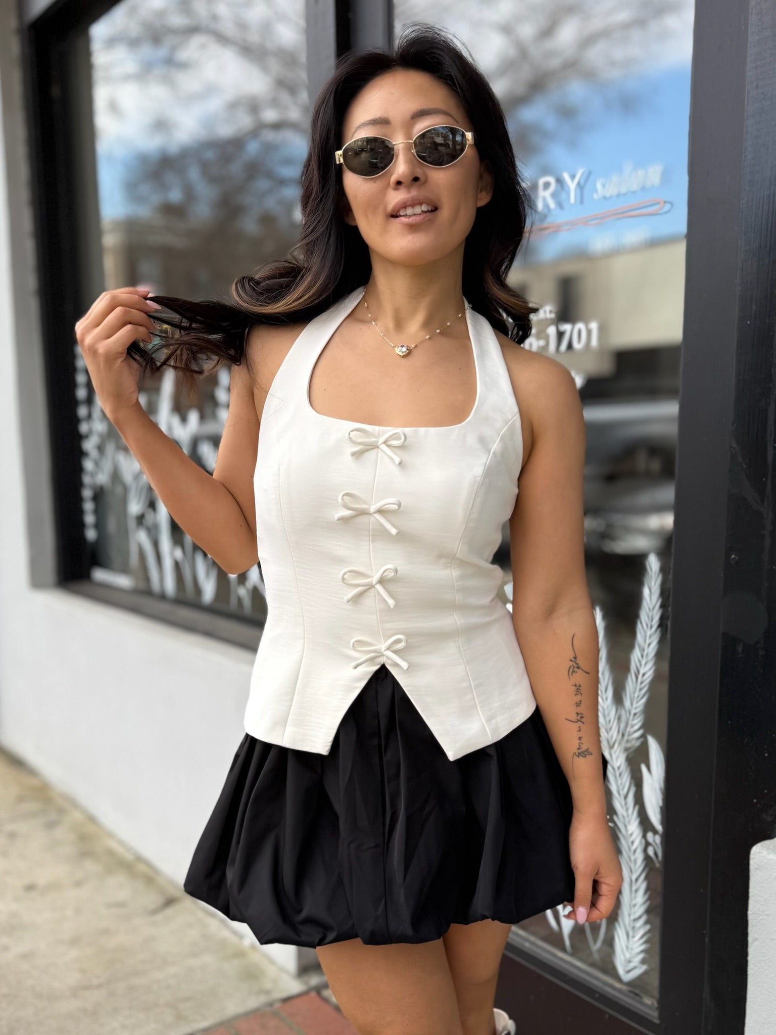 Elevate your look with the Clementine Chic Halter Vest, where modern sophistication meets effortless style. With its sleek halter design and tailored fit, this vest adds a fresh twist to any outfit, whether layered over a blouse for a professional look or worn solo for a bold, statement-making style.