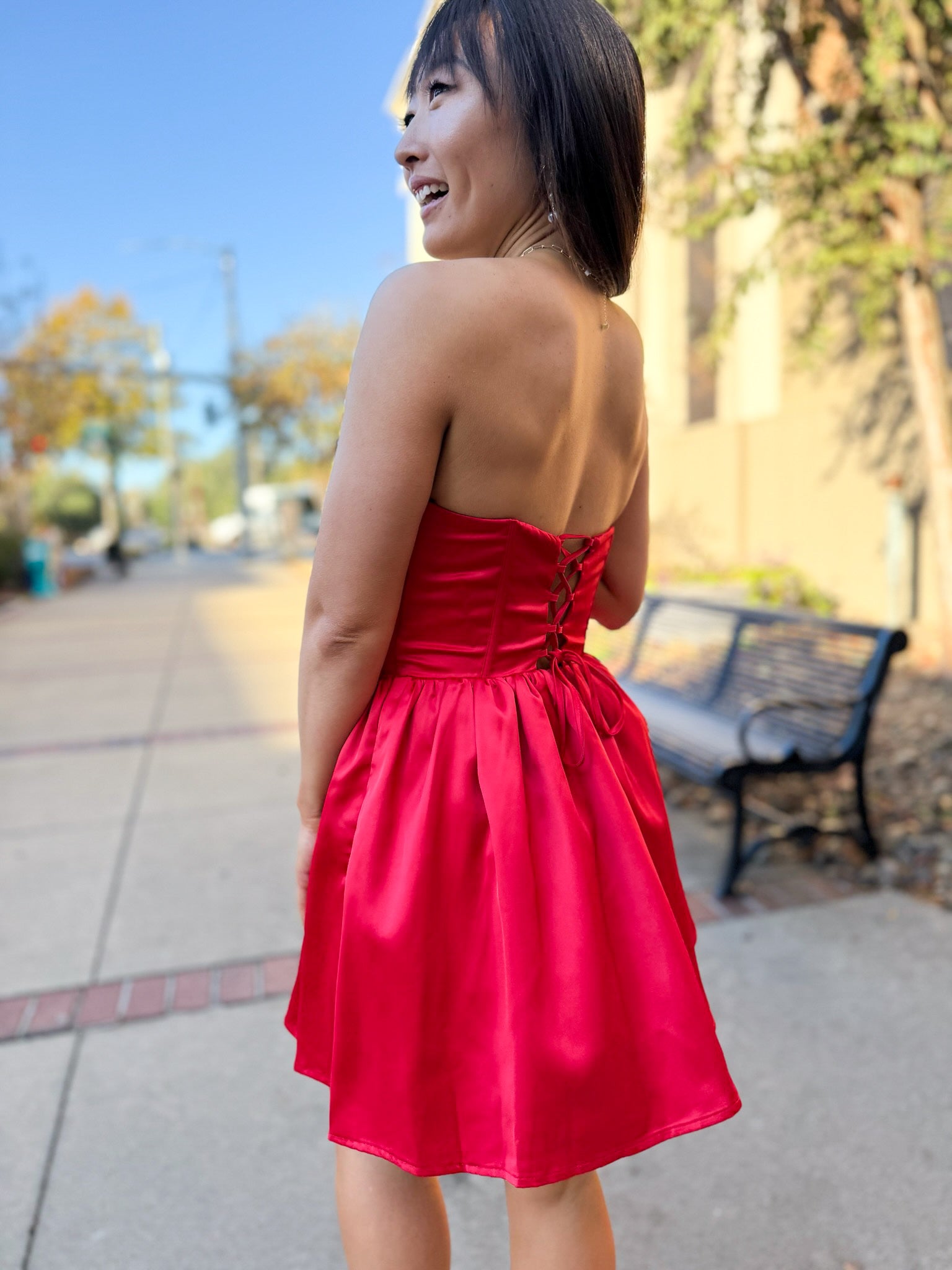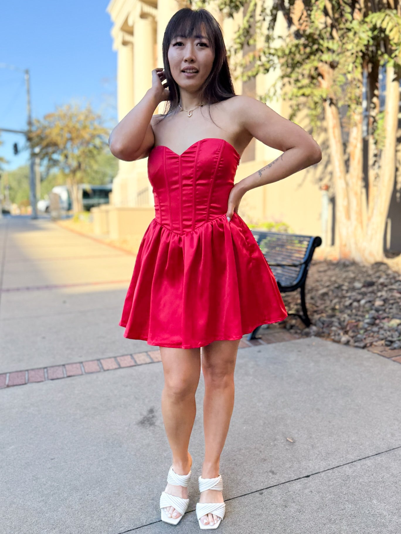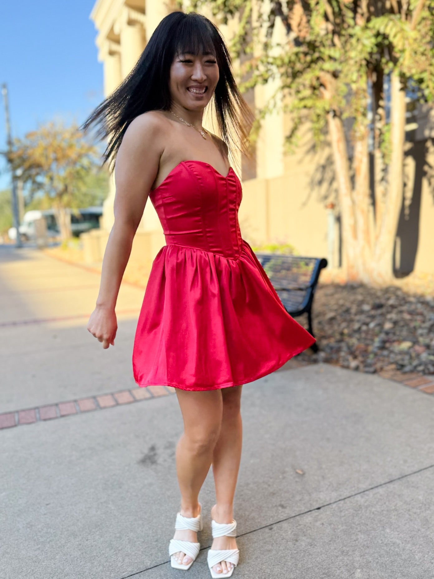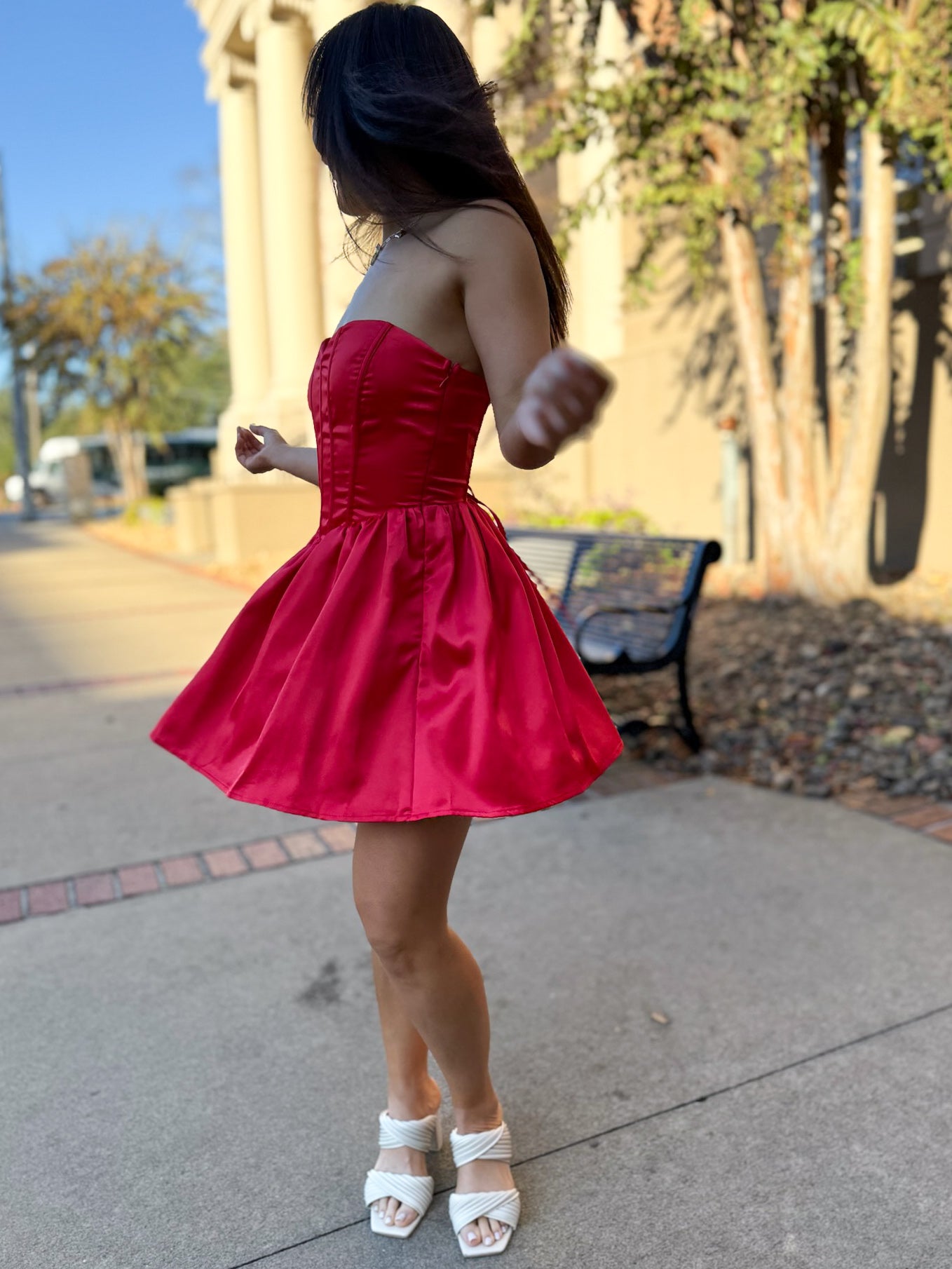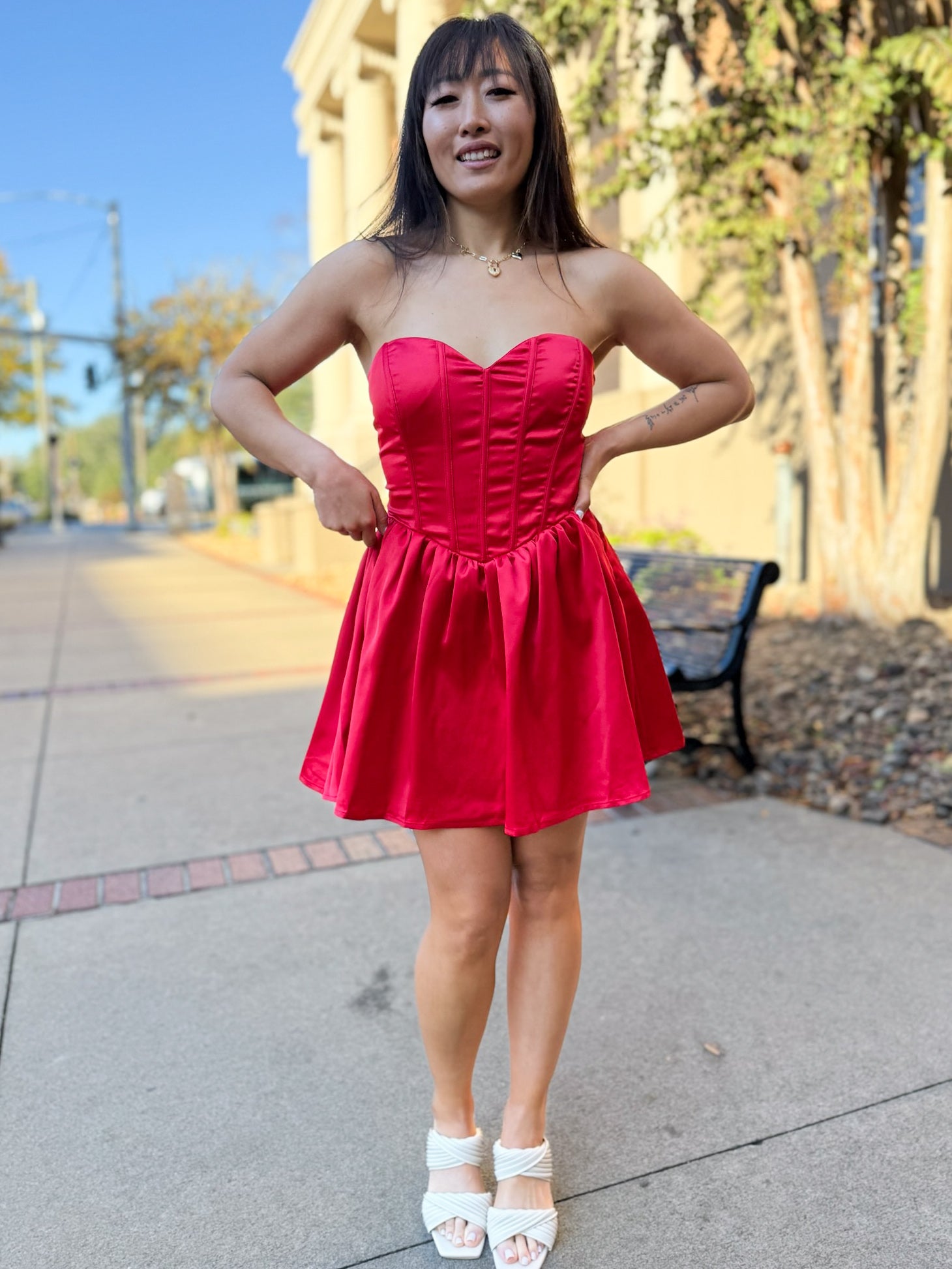 This stunning dress effortlessly combines classic and contemporary elements for a look that’s both timeless and bold. The sweetheart neckline beautifully enhances the décolletage, creating a flattering, romantic silhouette. Paired with corset detailing that cinches the waist and adds structure, it accentuates your curves in all the right places.
