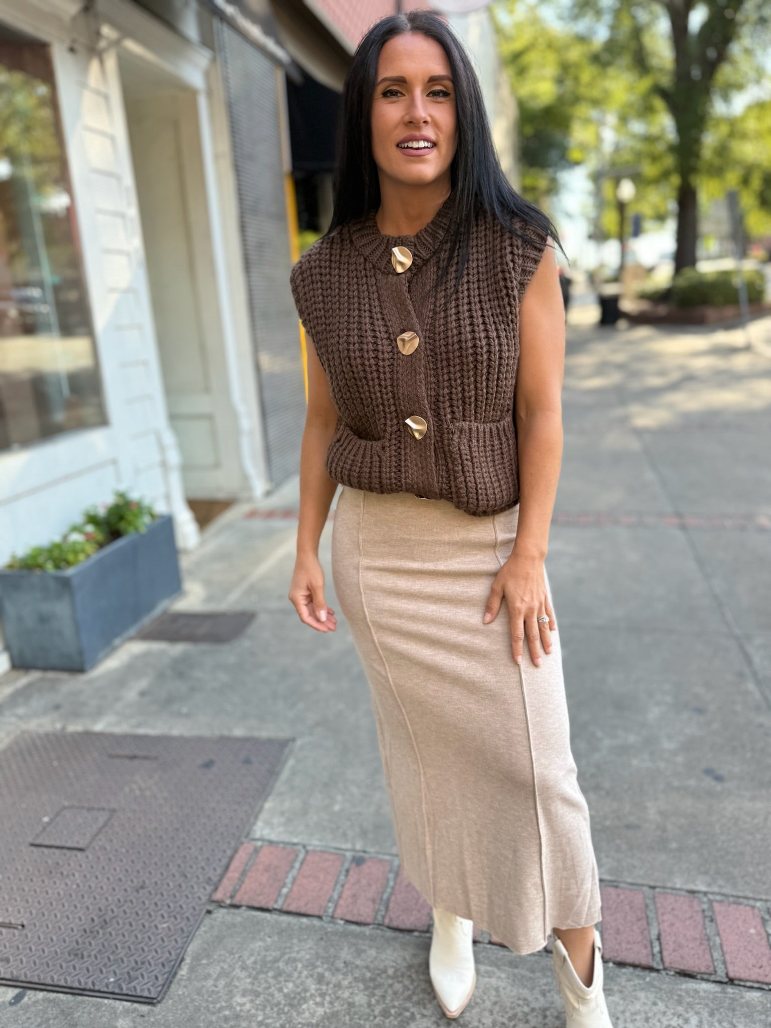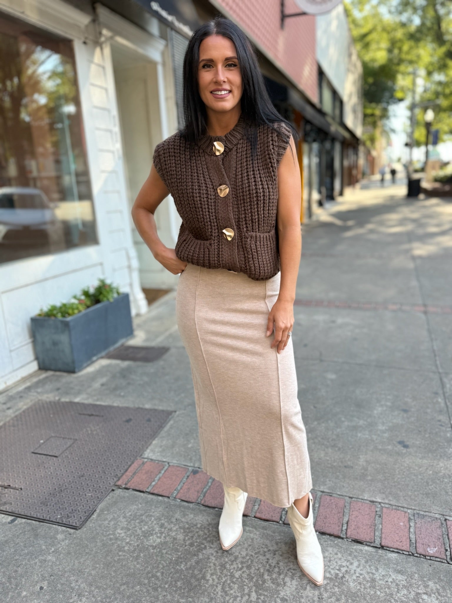 Cozy Neutral Midi Skirt