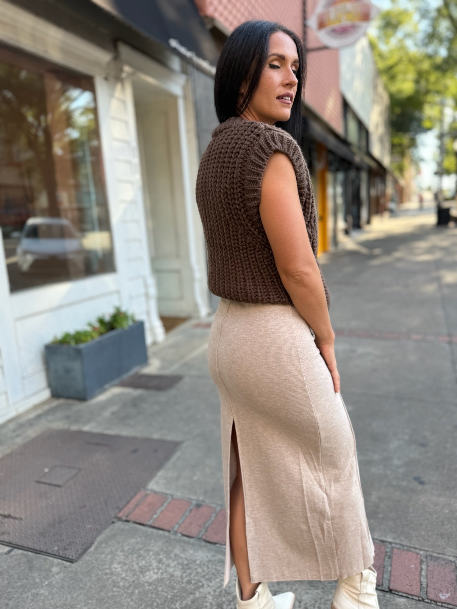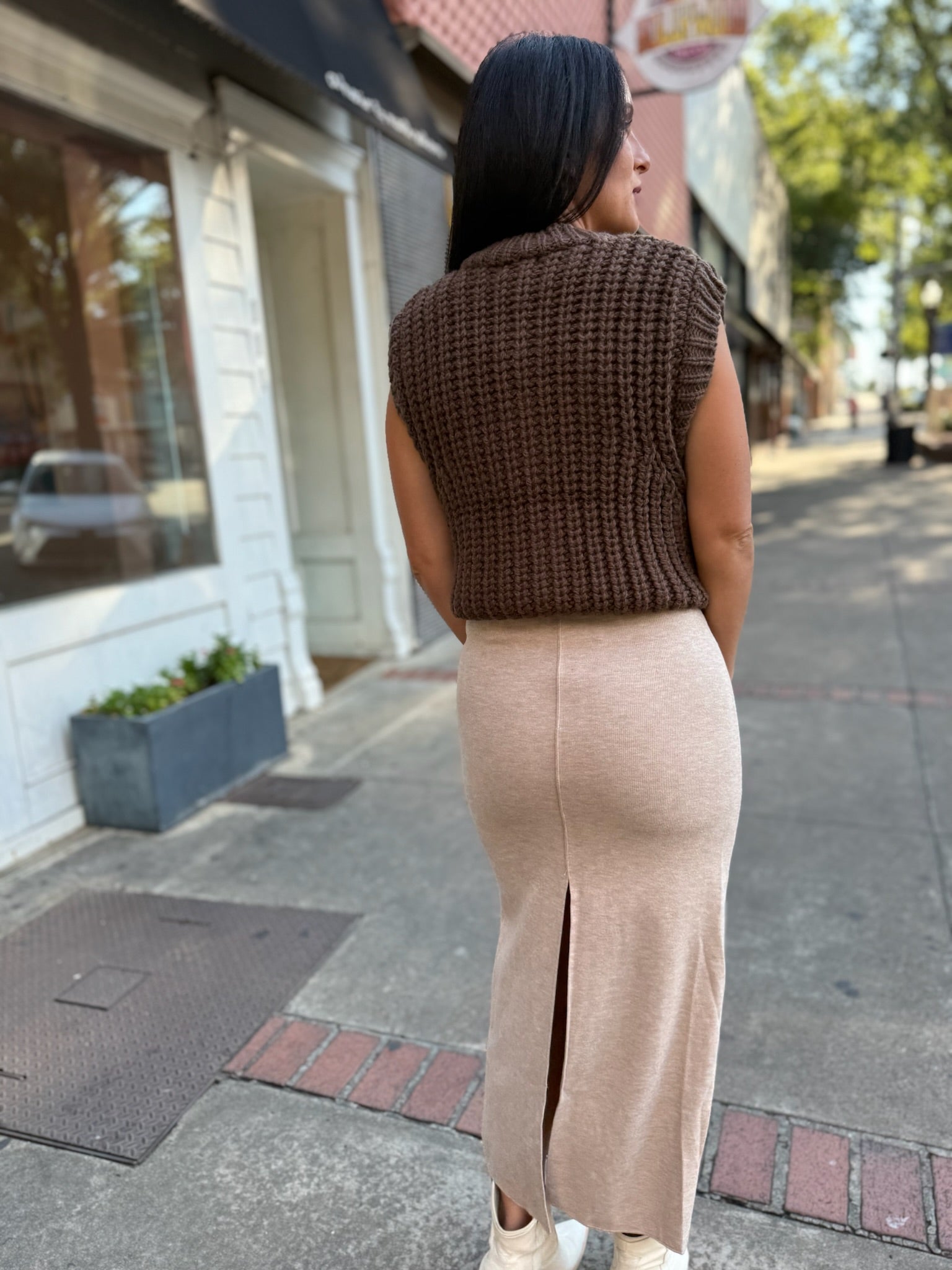 The Cozy Neutral Midi Skirt is a timeless closet staple designed for effortless style and all-day comfort. Crafted from a soft, lightweight knit, it features a flattering straight silhouette that skims the body and falls to a chic mid-calf length. Subtle seam detailing elongates the look, while side slits add a touch of movement. Perfect for pairing with chunky sweaters or sleek tops, this skirt transitions seamlessly from casual afternoons to elevated evenings.