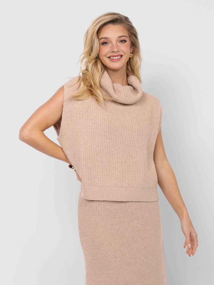 Wrap yourself in effortless chic with the Cream Crosby Ribbed Turtleneck Vest. Designed with a cozy cowl neck and relaxed sleeveless cut, this versatile knit is perfect for layering or wearing on its own. Its soft ribbed texture adds just the right touch of sophistication while keeping you comfortable all day. A timeless neutral that transitions seamlessly from workday polish to weekend ease—this vest is a must-have in your fall wardrobe.