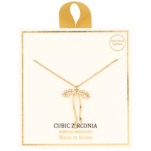 Add a touch of charm with the Dainty Sparkle CZ Bow Necklace! 18k gold-dipped and tarnish-resistant, this delicate chain features a graceful bow pendant lined with sparkling cubic zirconia for just the right amount of shine. Perfect for layering or wearing solo, it’s a feminine and timeless piece that elevates both everyday looks and special occasions. A sweet and sophisticated must-have for any jewelry collection!