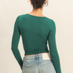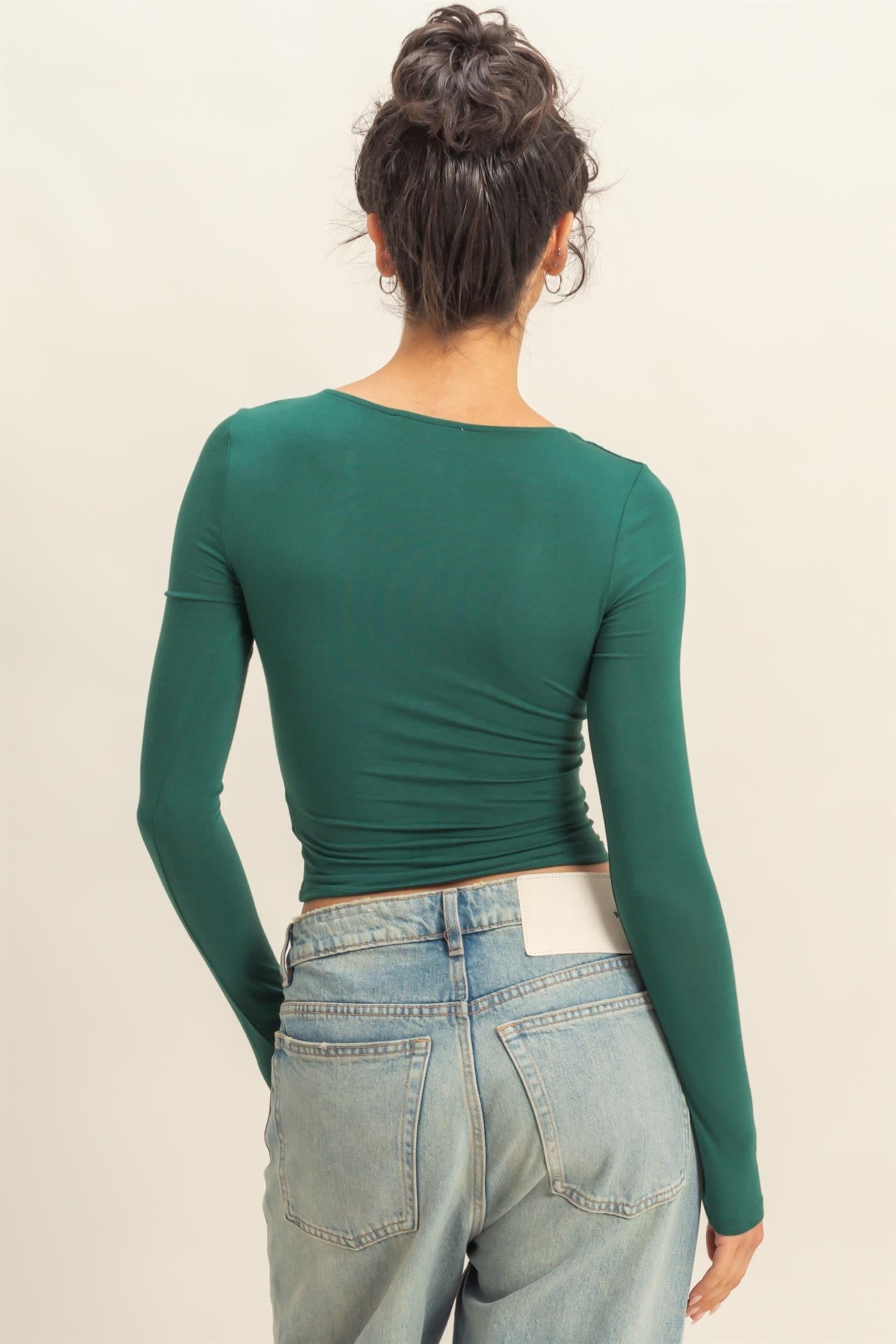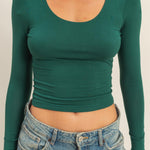 Dark Green Scoop Neck Long Sleeve Crop Top