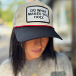 Elevate your everyday style with the “Do What Makes You Holy” hat — a bold yet meaningful accessory that speaks truth with every wear. Designed with a comfortable mesh back and a classic black and cream color combo, this hat pairs effortlessly with any outfit while reminding you to stay grounded in your purpose. Whether you're on the go or taking a quiet moment for yourself, this hat is your go-to for fashion that inspires. Grab yours today and wear your message with pride!