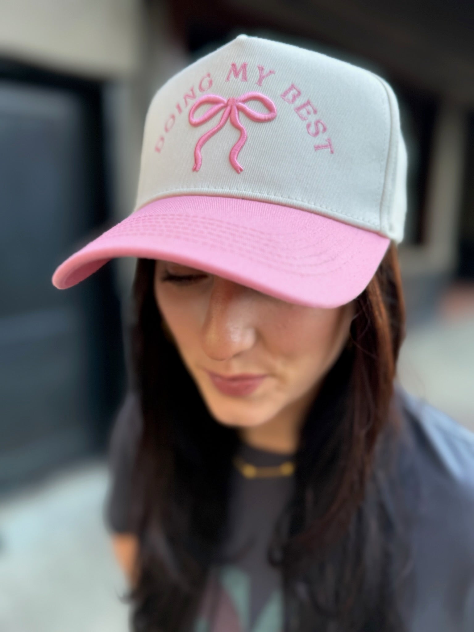 - Doing my best - the best daily reminder! - Pink Vintage Hat with pink embroidery + a bow!