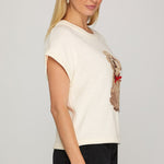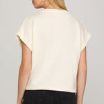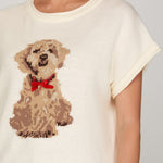 Drop Short Sleeve Puppy Knit Sweater Top - Cream