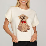 Add playful charm to your wardrobe with this drop short sleeve puppy knit sweater top. Soft, cozy, and irresistibly cute, it features a whimsical puppy design that brings personality to any outfit. Perfect for casual days or layering under jackets, this fun and stylish top is sure to brighten your look.
