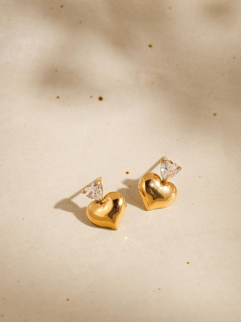 Fall in love with timeless elegance with the Elspeth 18K Non-Tarnish CZ Heart Earrings, a delicate yet radiant symbol of romance. Featuring polished gold heart studs topped with brilliant CZ stones, these earrings bring a touch of sophisticated charm to any outfit. Tarnish-resistant and effortlessly chic, they’re the perfect blend of sweet and stylish—add them to your collection today!