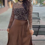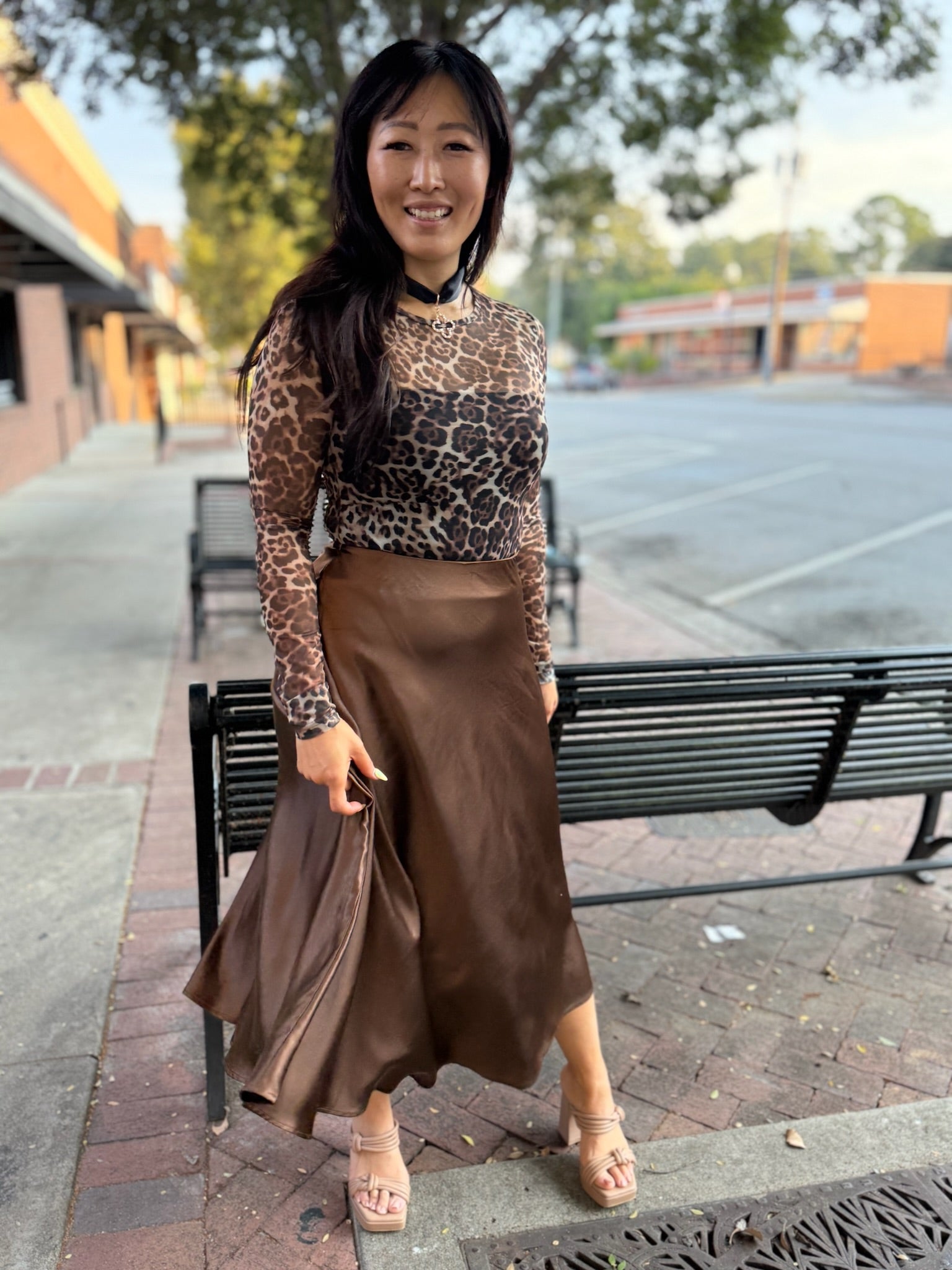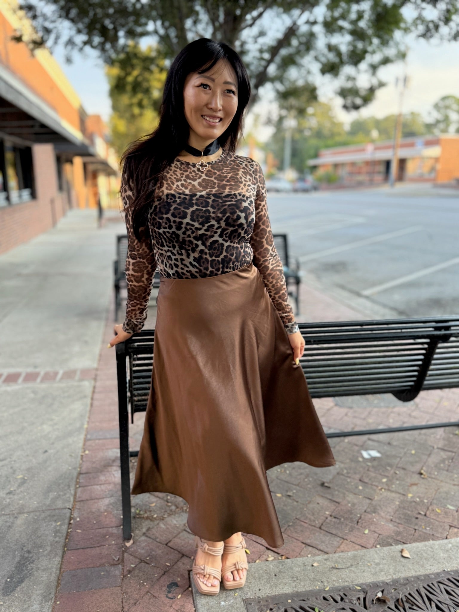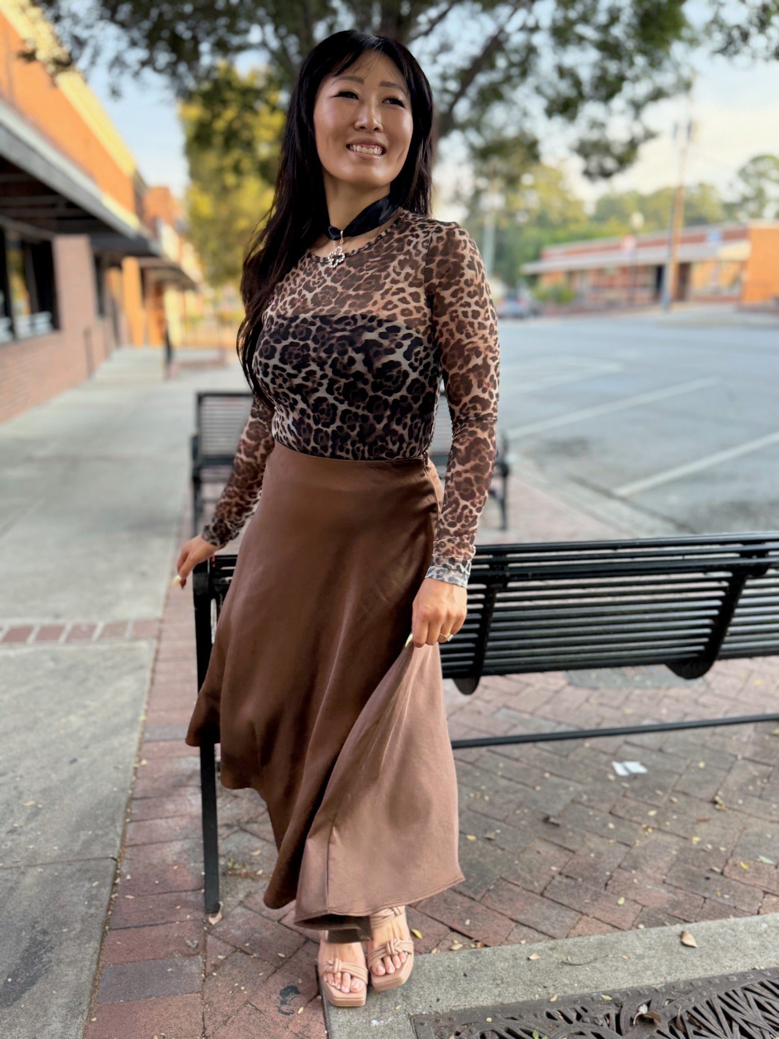Classic and feminine, the Espresso Flare Skirt is a timeless piece designed to flow effortlessly with every step. Crafted in a rich espresso hue, this midi-length skirt features a soft, fluid drape that flatters the silhouette while adding movement and elegance. Perfect for pairing with cozy knits, sleek blouses, or statement outerwear, it transitions seamlessly from daytime sophistication to evening chic.