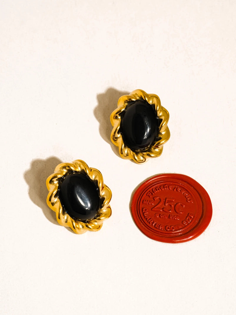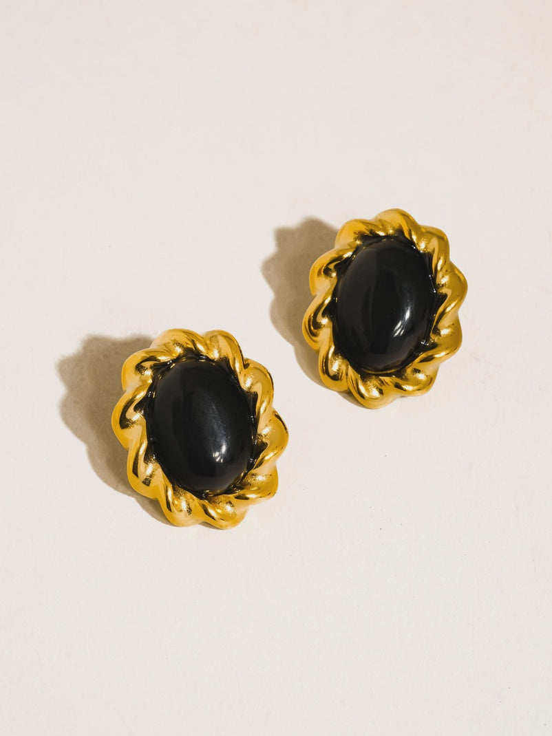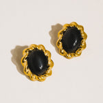 Eulie 18K Gold Vintage Oval Stone Earrings - Black
