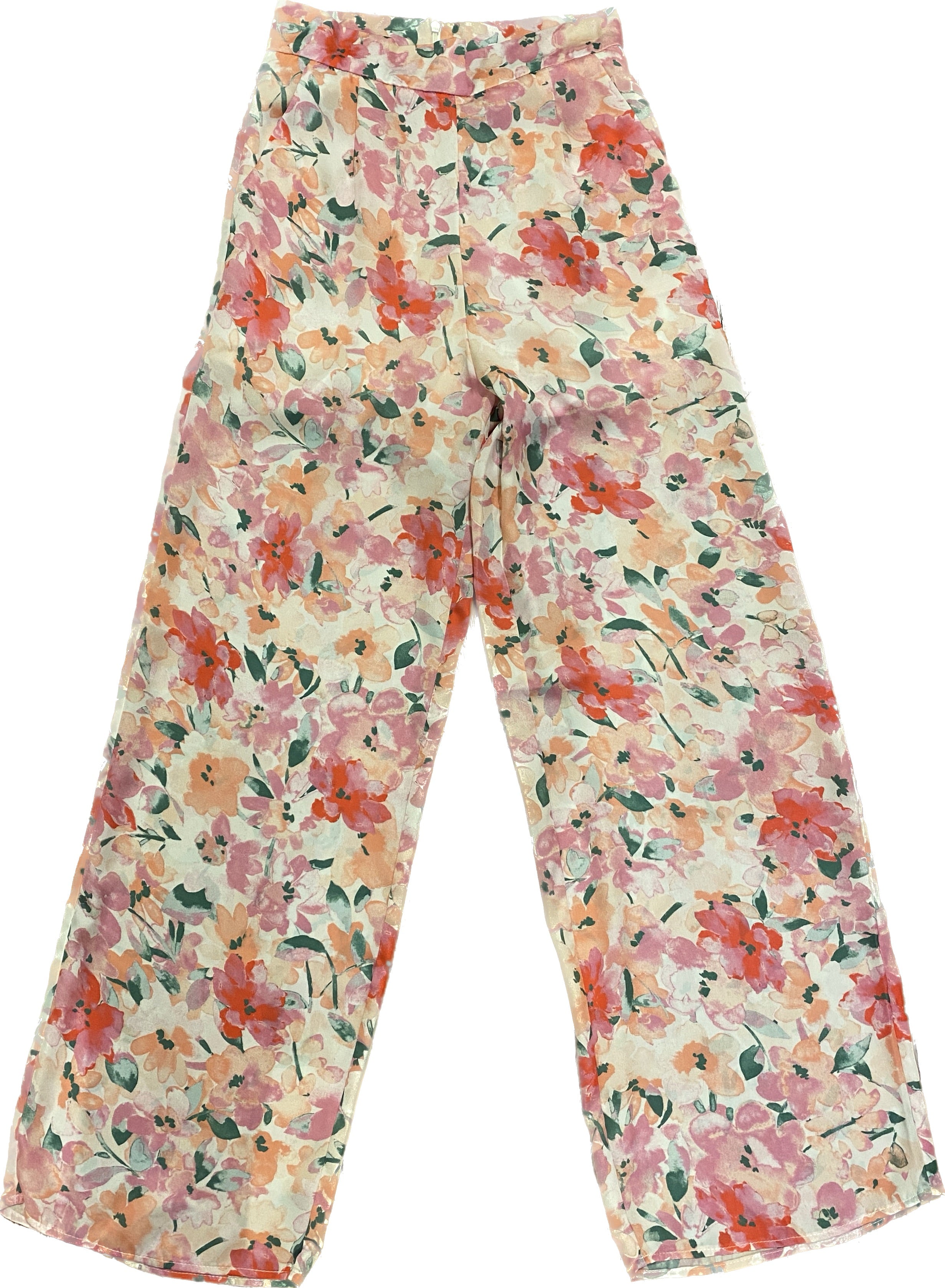 White and pink floral long pants