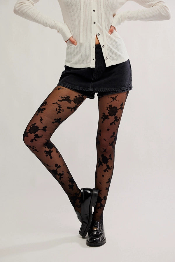 Flocked Floral Tight - Black Combo
