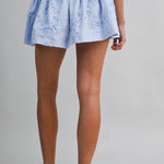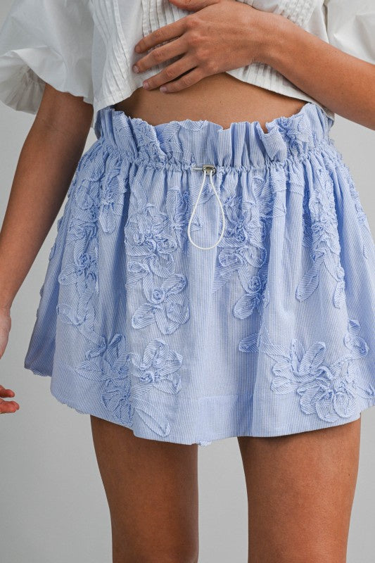 Blue Floral Applique Elastic Waist Mini Skirt