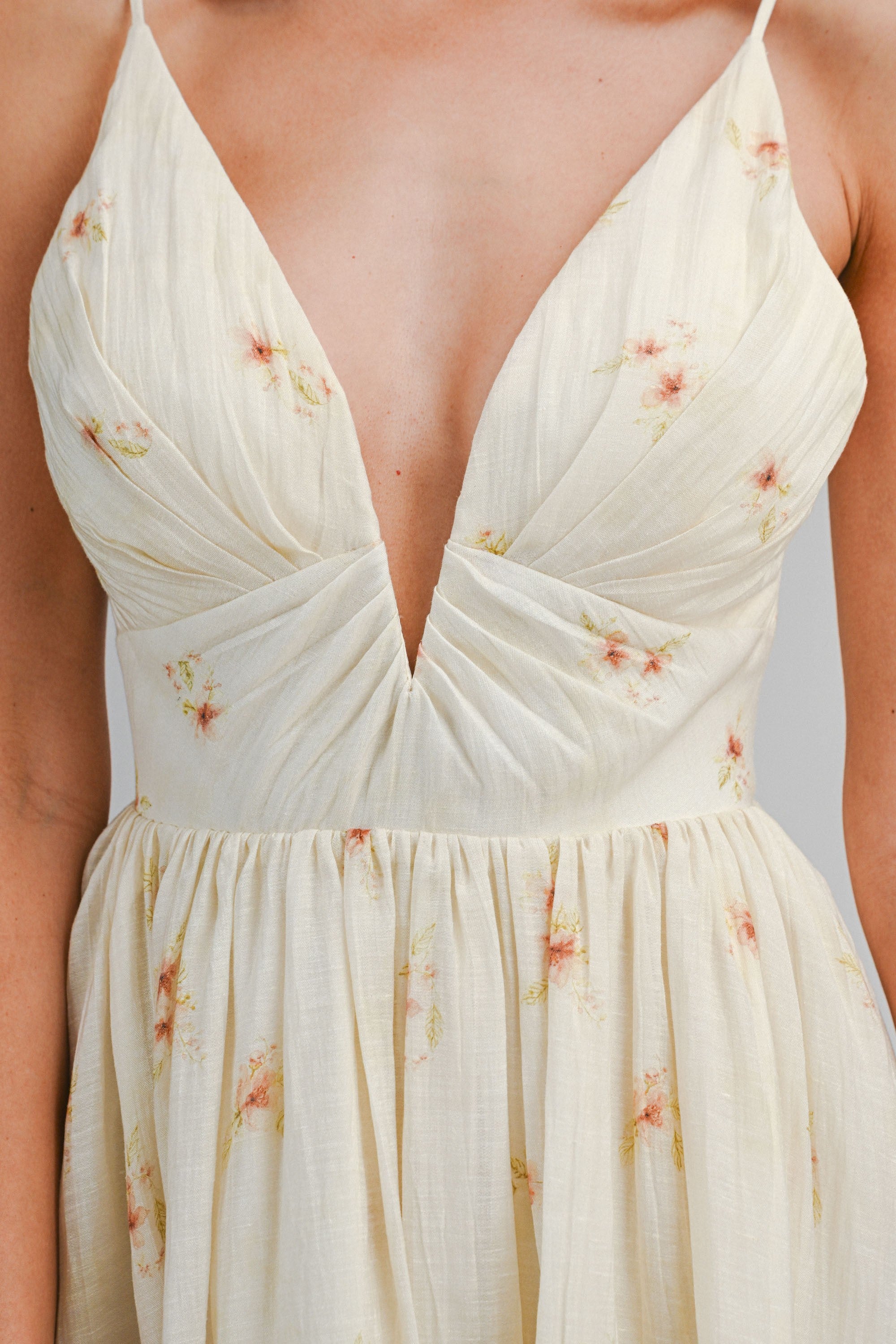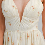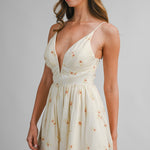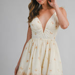 Cream Floral Print Deep V Neck Adjustable Strap Dress
