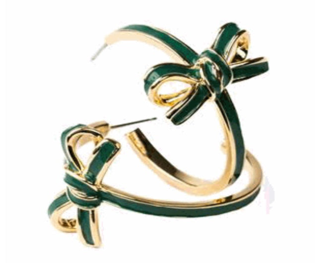 The Forest Luxe Bow Hoop Earrings are a bold yet elegant fusion of whimsy and sophistication. Featuring a unique design that combines the classic hoop silhouette with a chic, oversized satin bow in a rich forest green hue, these earrings make a striking statement. The smooth, polished hoops provide a sleek contrast to the luxurious texture of the bow, while the deep green color adds a touch of opulence and warmth. Perfect for elevating any outfit, from casual chic to evening glamour, the Forest Luxe Bow Hoop Earrings offer a playful yet refined edge. With their eye-catching design and modern elegance, they are a standout accessory that brings a dash of luxury to your jewelry collection.