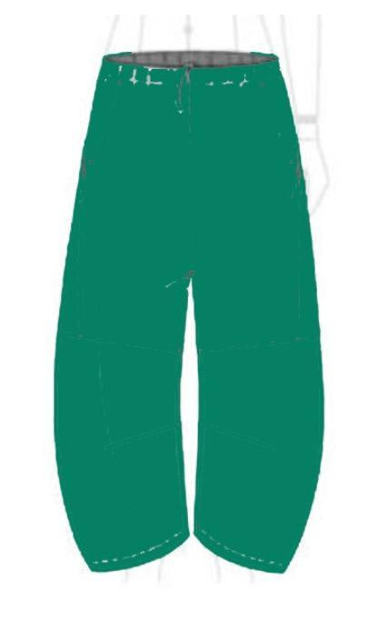 Features: High-rise style; slightly barreled legs; elasticated waistband; side pockets
