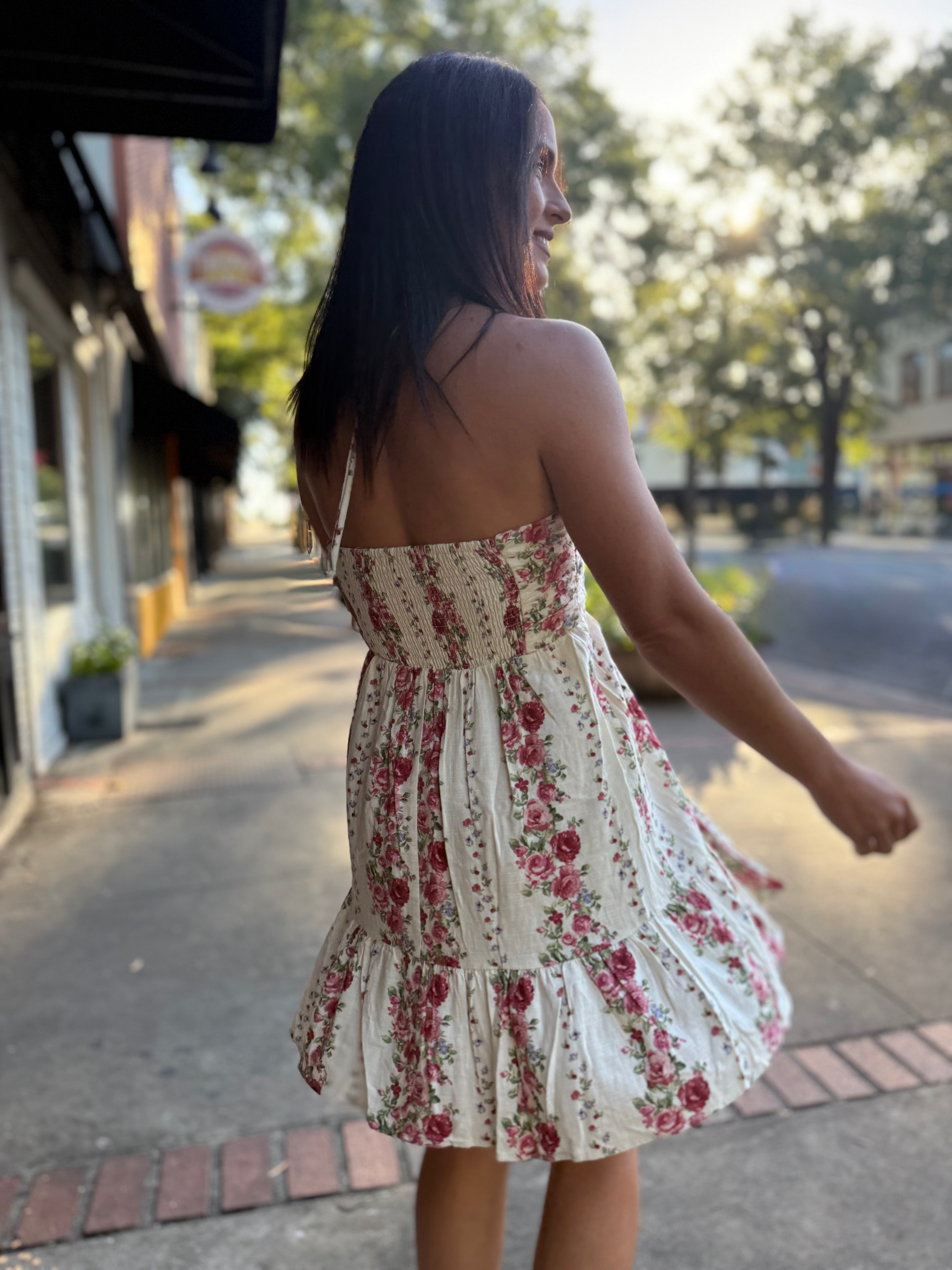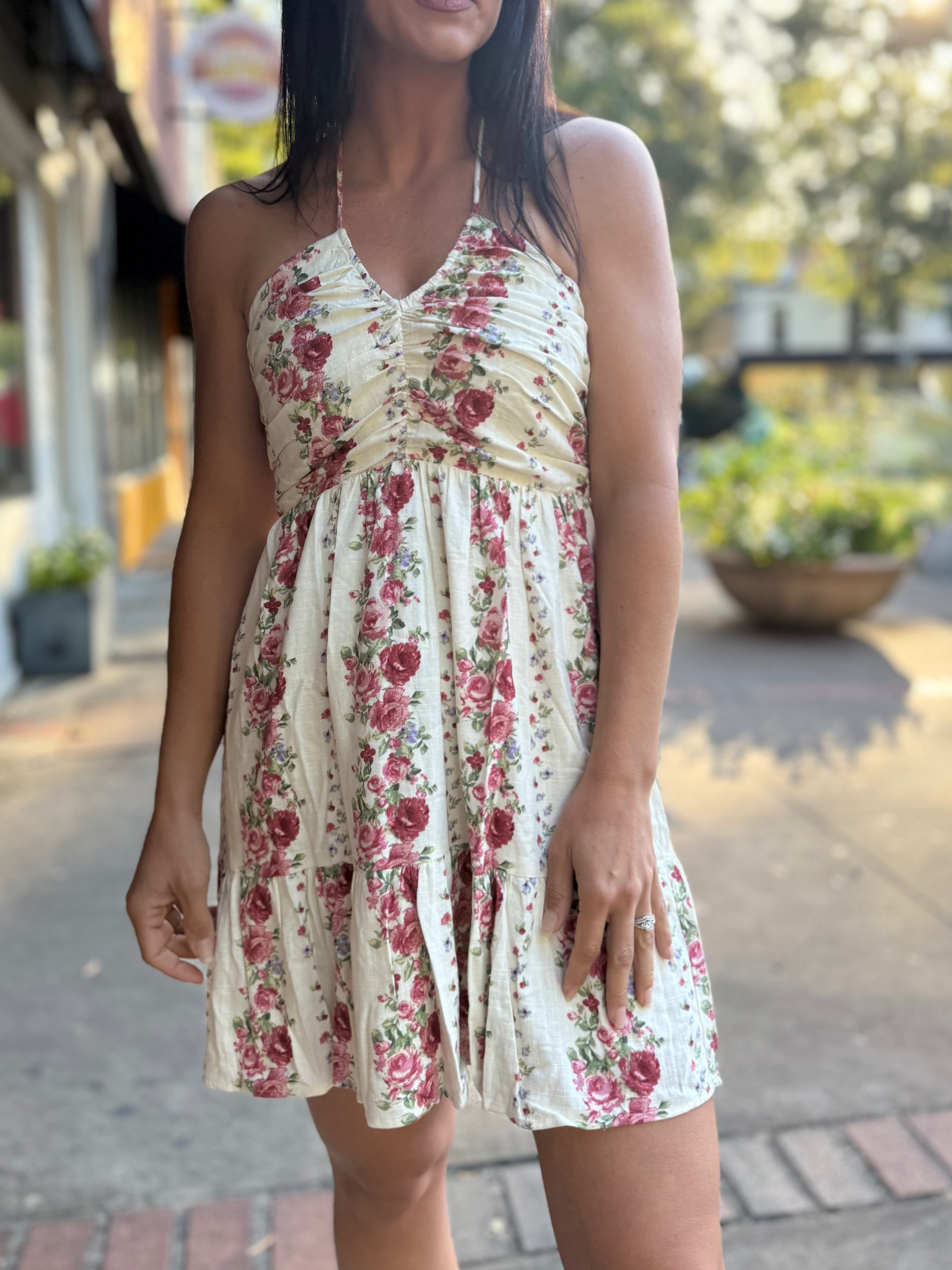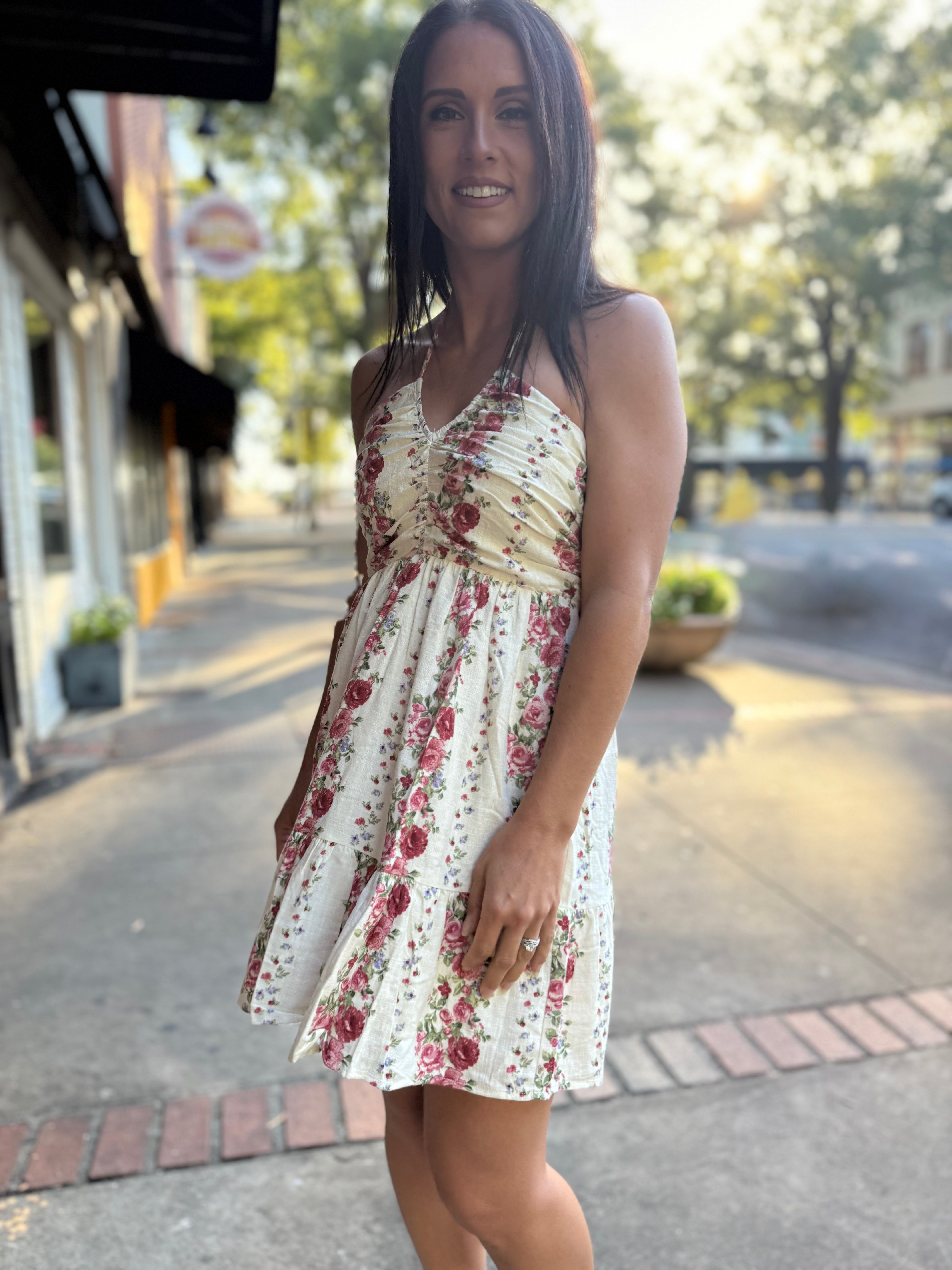 Breeze through any occasion in the Garden Glow Halter Dress. With its flattering V-neckline, feminine floral print, and comfortable back smocking, this dress offers a perfect blend of style and ease. Whether paired with sandals for a casual day out or dressed up with heels for a summer evening, it’s the effortless piece that always makes you feel beautifully put together.