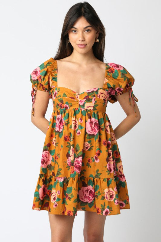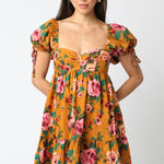 The Golden Garden Puff Sleeve Dress blooms with bold romance in a vibrant marigold hue. Featuring a sweetheart neckline, playful puff sleeves with tie details, and a breezy tiered skirt, this floral mini radiates sunshine and charm. Perfect for brunch dates or outdoor soirées, it’s the statement piece that feels as good as it looks — feminine, flirty, and effortlessly fresh.