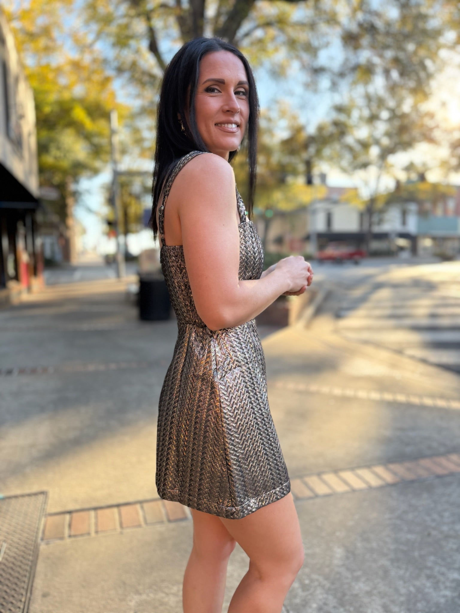Shine bright in the Golden Glam Party Jacquard Romper. A stunning statement piece made for nights that sparkle. Crafted with luxurious jacquard fabric in a radiant gold finish, it catches the light with every move. The flattering fit and playful silhouette bring the perfect mix of chic and fun, making it your go-to for parties, celebrations, and unforgettable evenings. Pair with bold heels and statement jewelry for a head-turning look that exudes confidence and style.