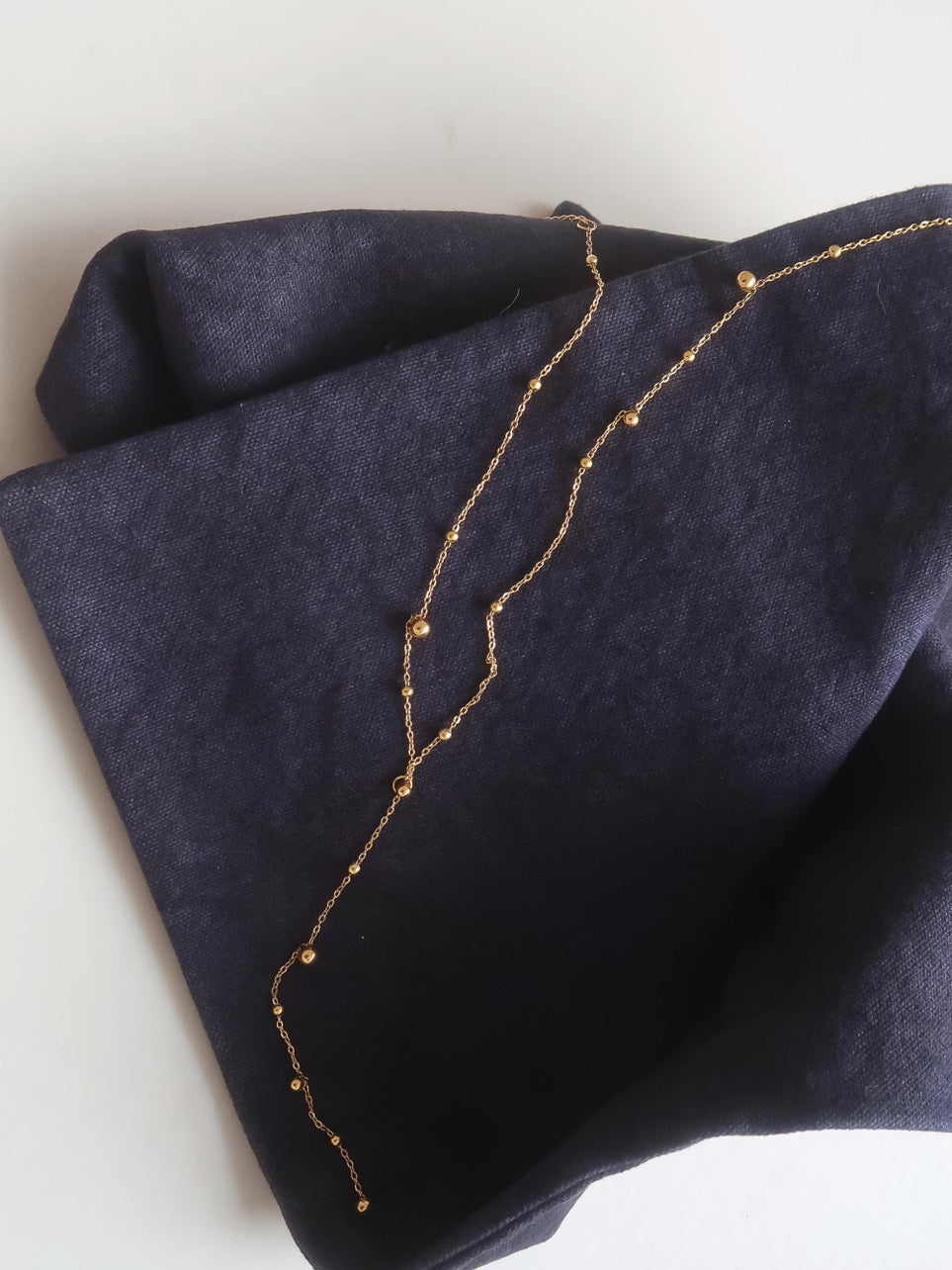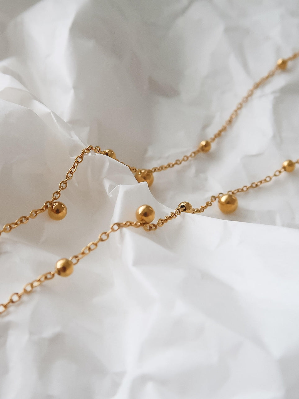 Add timeless elegance to your look with the Golden Grace Beaded Y Lariat Necklace. Crafted in 18K gold with a non-tarnish finish, this necklace features delicate beaded detailing and a chic Y-shaped silhouette that flatters every neckline. Perfect for dressing up an evening outfit or adding a touch of sophistication to your everyday style, it’s a versatile piece designed to shine season after season.