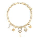 Unlock your style with the Heart & Key Crystal Charm Necklace! This exquisite piece features a delicate gold chain adorned with sparkling crystal heart and keylock charms, creating a stunning focal point. Perfect for layering or wearing solo, it adds a touch of elegance and whimsy to any outfit. Don’t miss out on this charming addition to your jewelry collection!