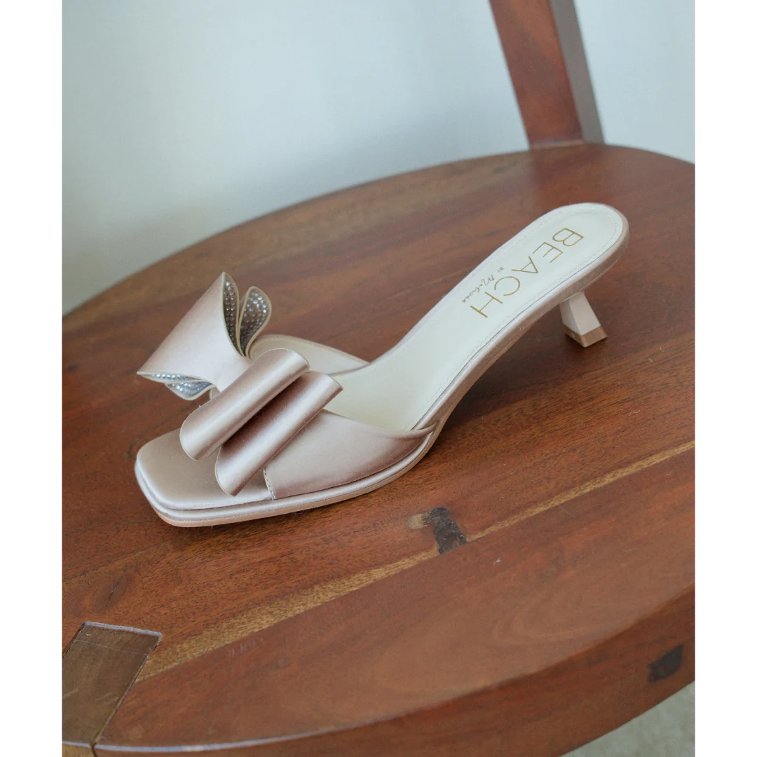 Wrapped in elegance with a satin-like finish and topped with the cutest oversized bow, the Holland Heel is what happens when comfort meets couture. That dainty kitten heel? Perfect for strutting through garden parties, bridal showers, or just feeling fab while grabbing your oat milk latte.