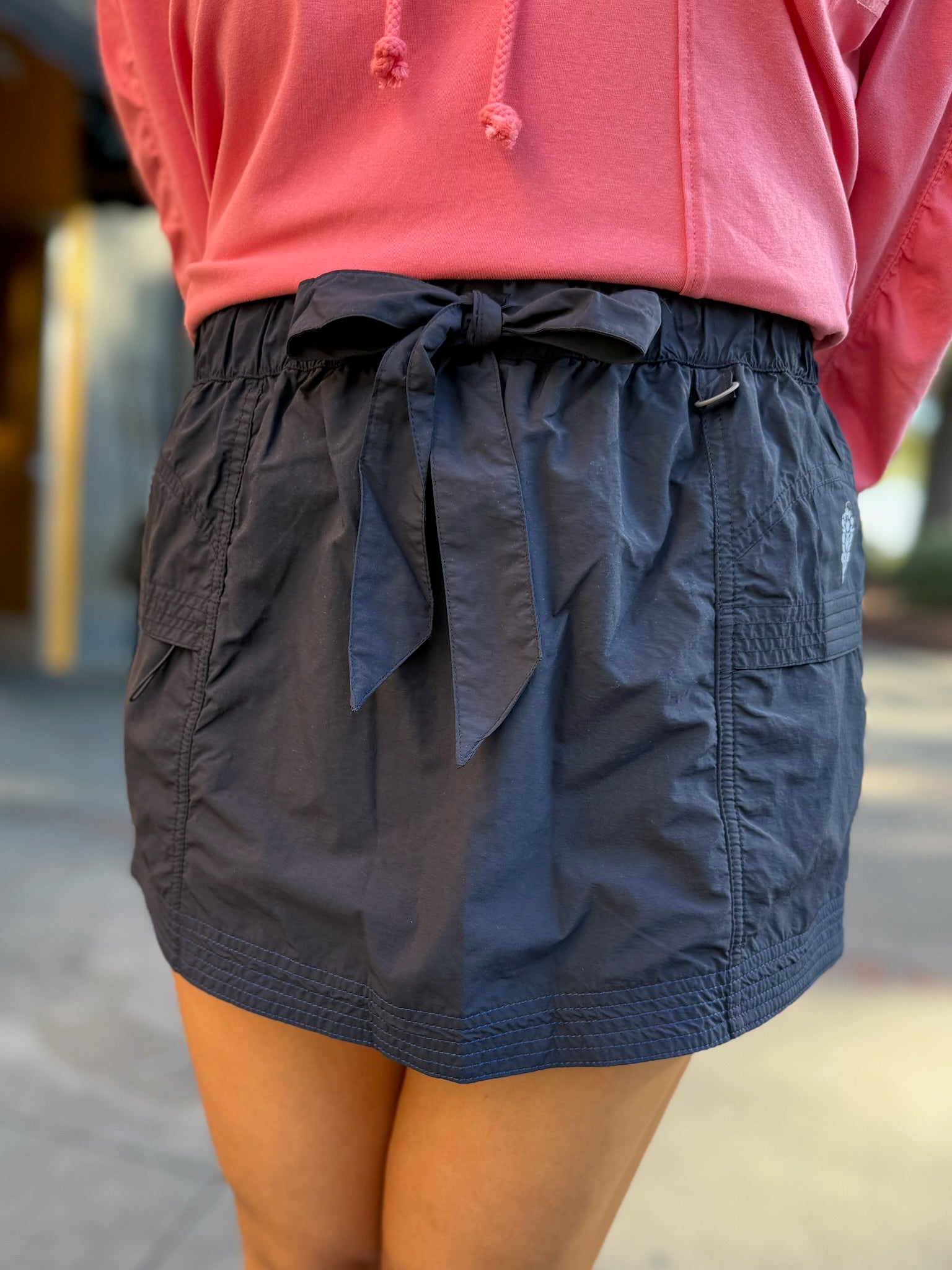 Femme meets functional with this adventure-ready skort featured in a high-rise fit with a smocked waistband and back-zip pocket.