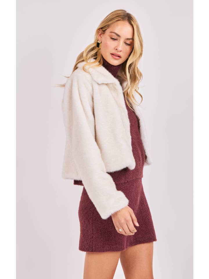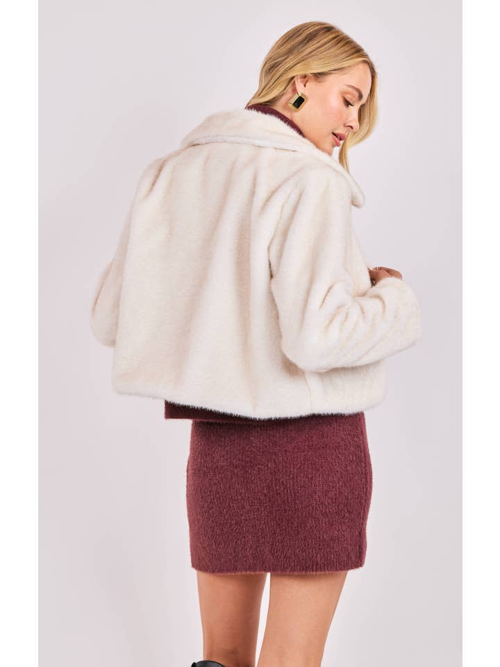 Wrap yourself in pure elegance with the Ivory Penelope Short Faux Fur Coat. Crafted with a plush faux fur finish, this chic cropped coat brings instant glamour to any outfit. Its soft ivory hue makes it a versatile layering piece—perfect for draping over evening dresses, pairing with denim, or elevating your everyday looks. Warm, cozy, and undeniably stylish, this is the statement coat you’ll reach for whenever you want to turn heads.