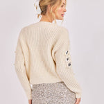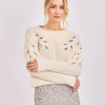 Ivory Silver Monroe Leaf Cutout Embellished Sweater