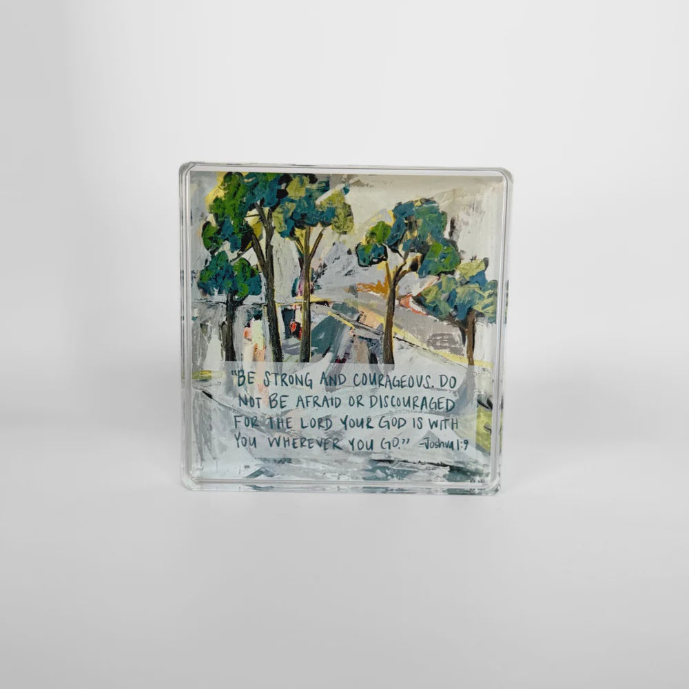 Our acrylic scripture blocks feature meaningful Bible verses paired with Lauren’s artwork, created as small reminders of encouragement and faith for everyday life. Each block is printed on acrylic, cut to shape, and designed to stand on its own — easy to display on a desk, shelf, or bedside table.