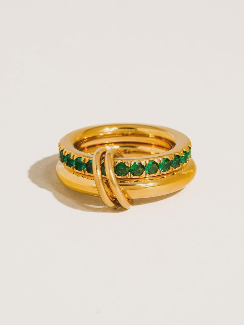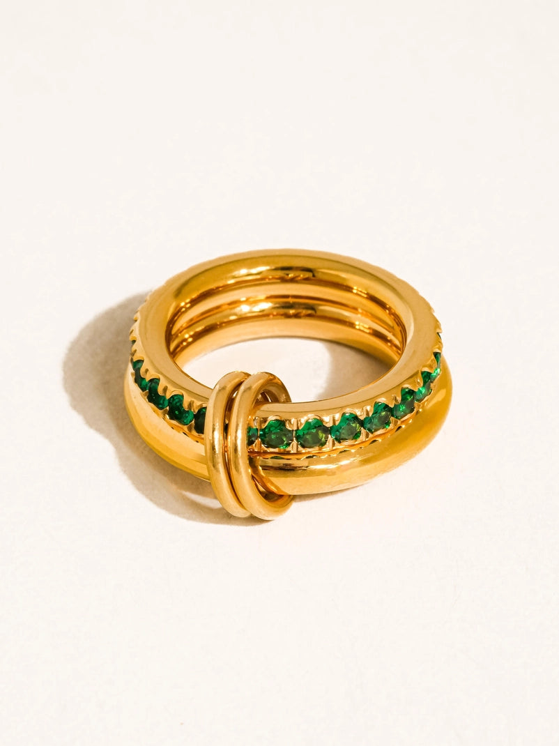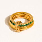 Justine 18K Gold CZ Double Hoop Ring - Green