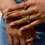 Step into chic sophistication with the Justine 18K Gold Non-Tarnish CZ Double Hoop Ring. Featuring a modern double-hoop design accented with sparkling cubic zirconia, this ring blends bold style with timeless elegance. Crafted with premium 18K gold plating that resists tarnish, it’s the perfect statement piece to elevate your everyday or evening look.
