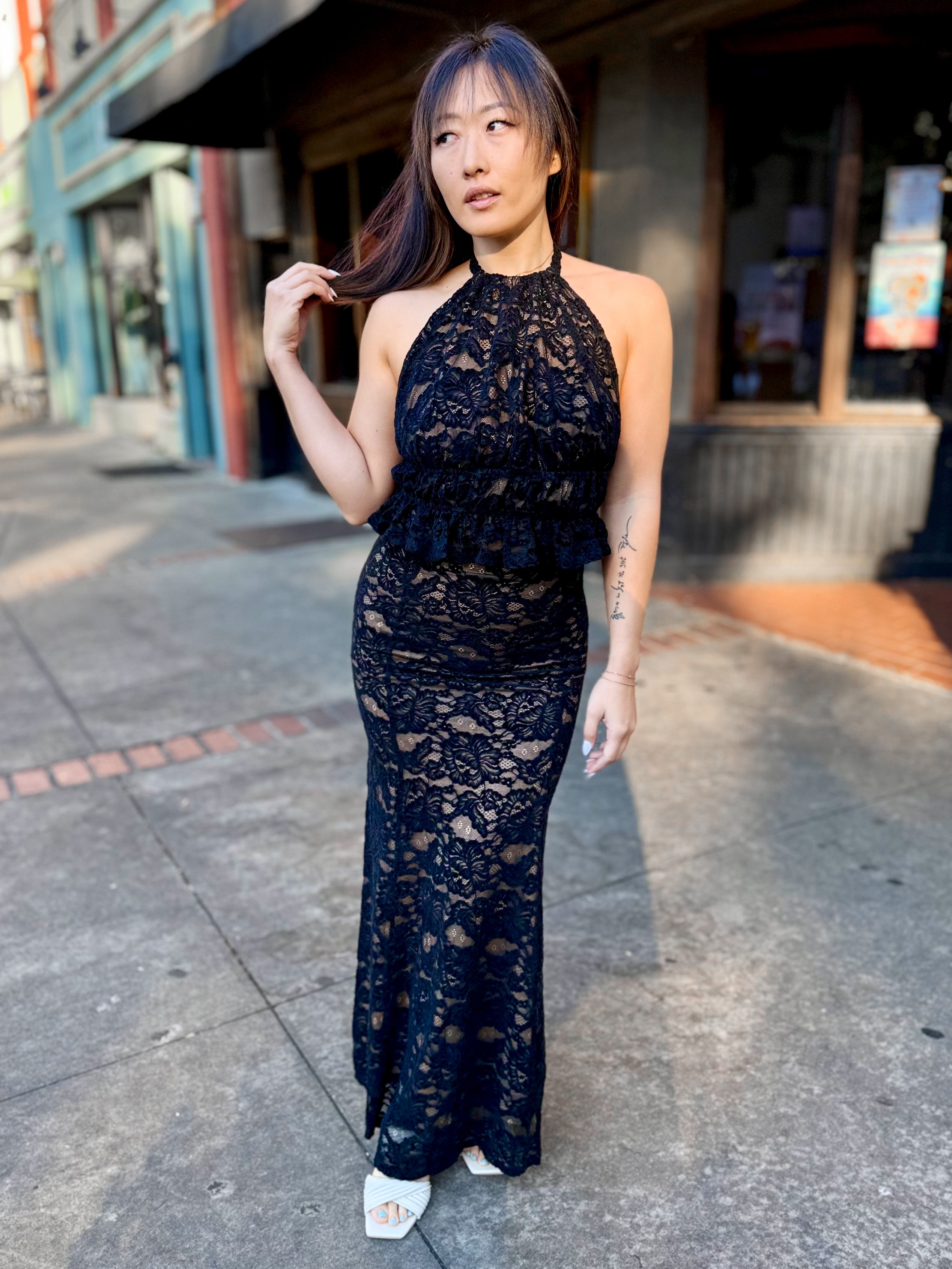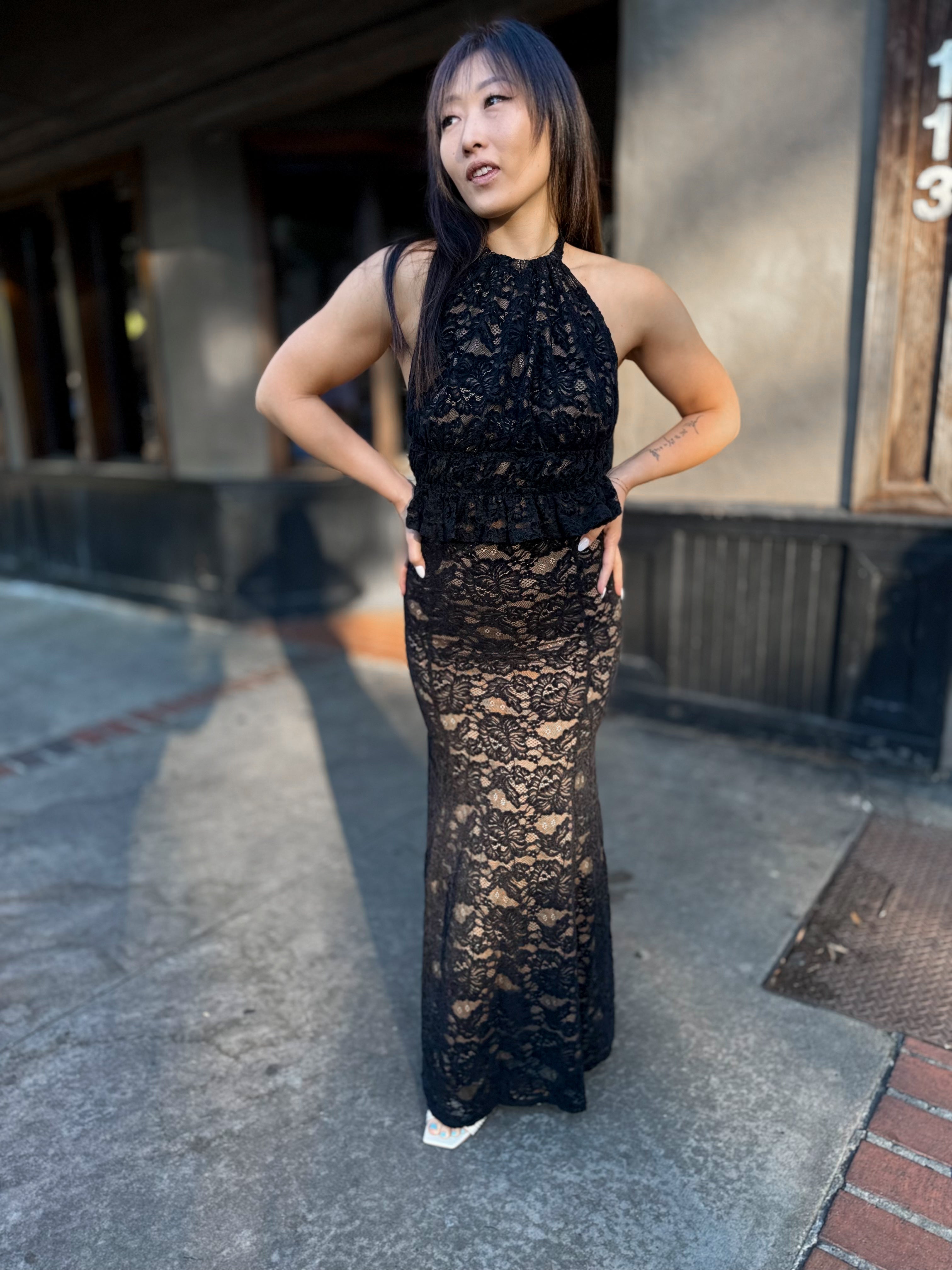 Elevate your style with the Lace Halter Open Back Top and Maxi Skirt Set, a perfect blend of elegance and allure. The delicate lace halter top features a stunning open back, paired with a flowing maxi skirt for a romantic, head-turning look. Ideal for special occasions or a glamorous evening out.