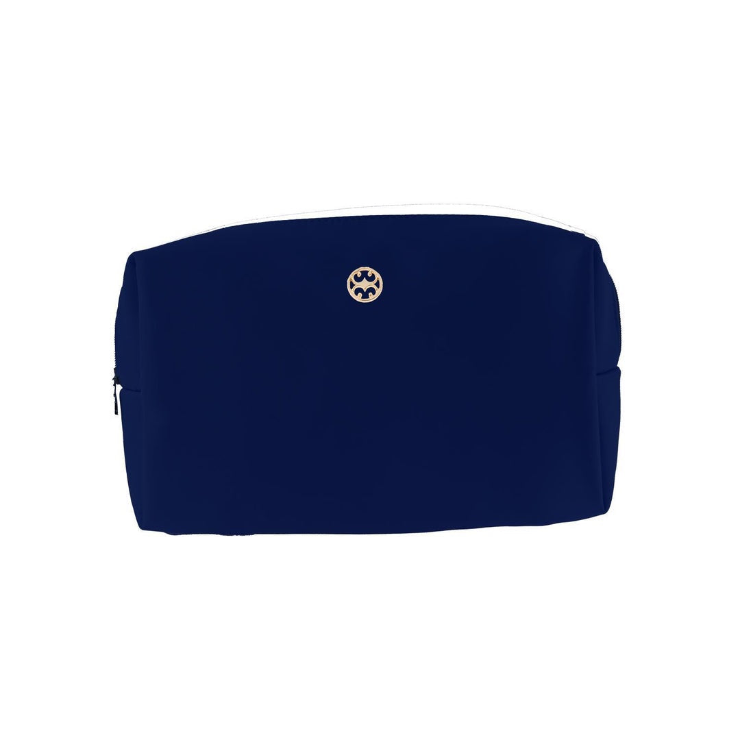 Sleek and minimalist, the Let’s Face It bag in Floral Foulard Navy is your perfect companion for everyday essentials or travel toiletries. Featuring a smooth navy exterior with a signature gold-tone emblem and zipper, this compact case offers both style and function. Ideal for stashing skincare, makeup, or grooming tools on the go.