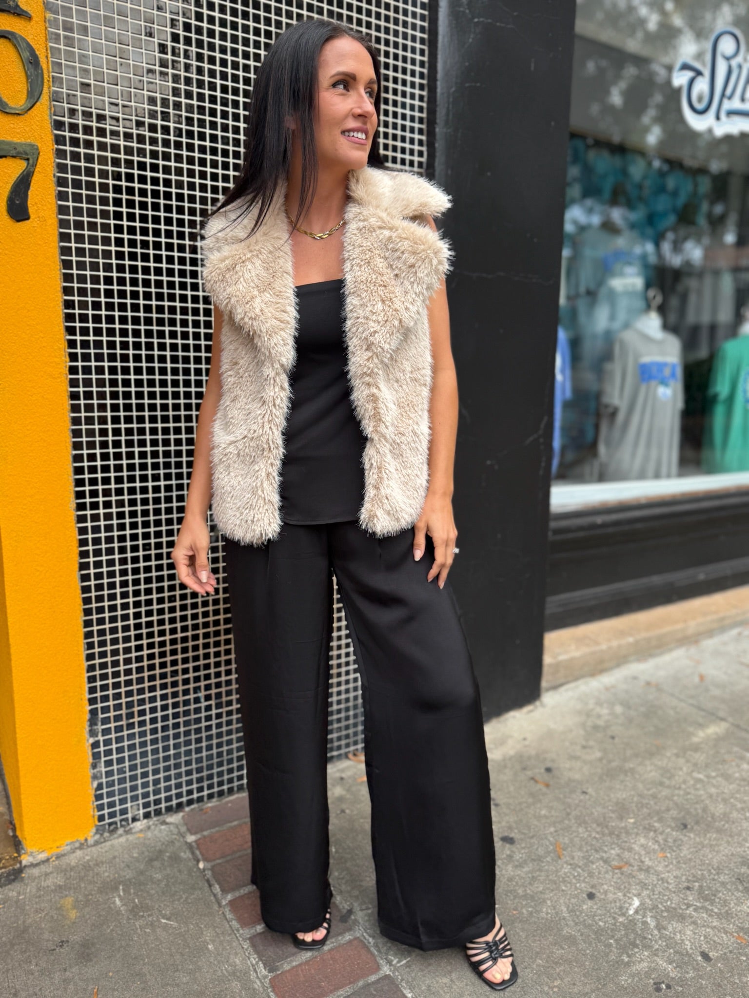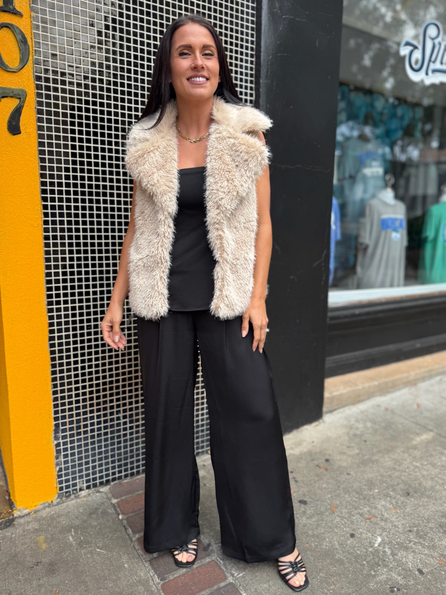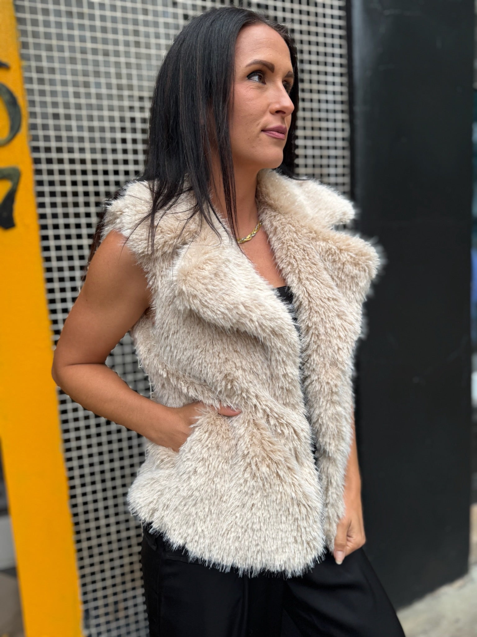 Wrap yourself in cozy sophistication with the Light Taupe Faux Fur Shawl Collar Jacket. Featuring an oversized collar and luxuriously soft texture, this piece adds instant elegance to any look. Its relaxed fit makes it perfect for layering over dresses or casual knits, making it a versatile statement layer for chilly days.