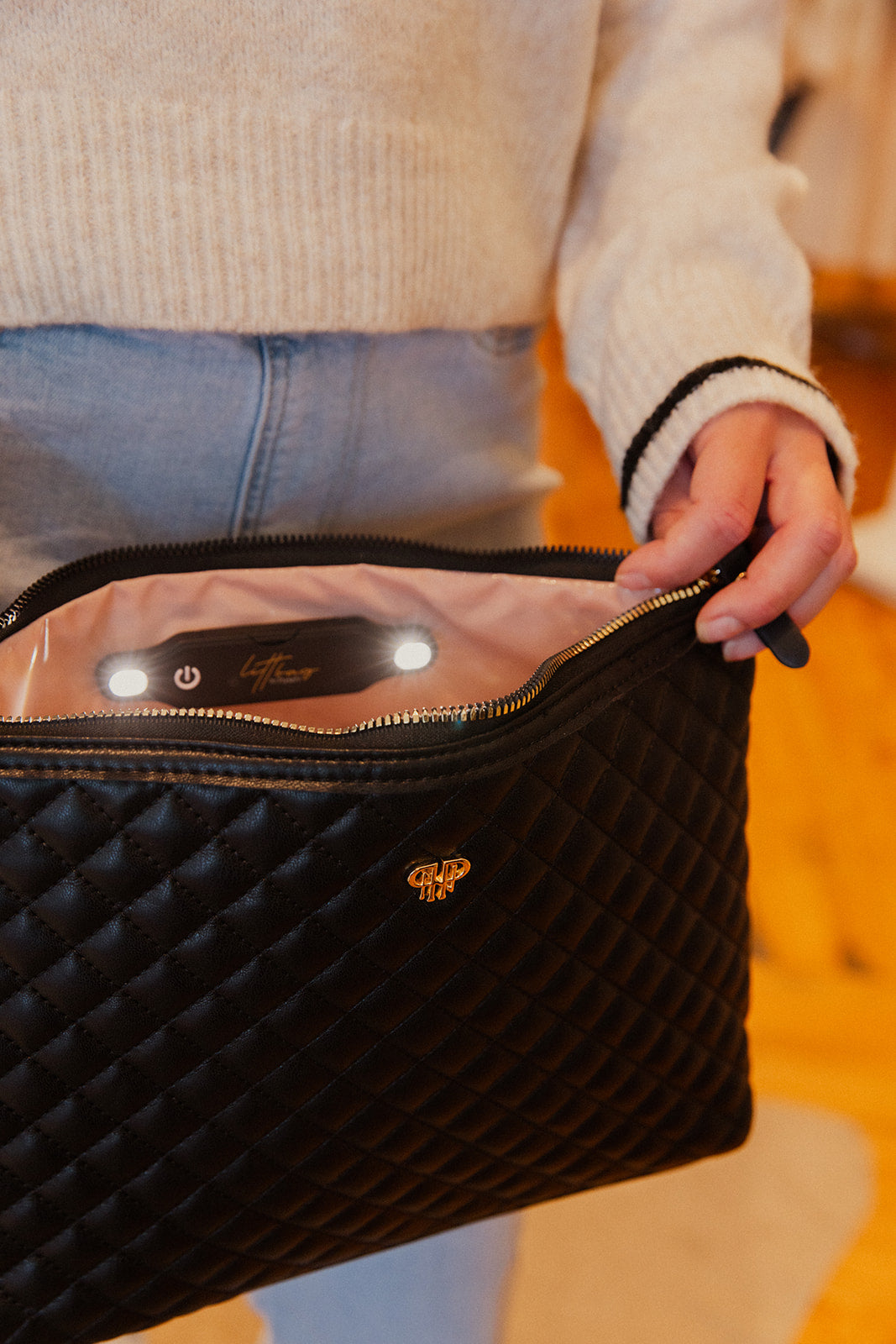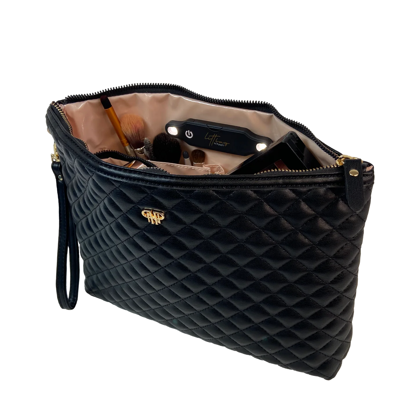 The Litt Makeup Case is perfect for storing all of those cosmetic items you can't be without, and now with the amazing LED Light you won't be searching in the dark! Easily transition from day to night, carry your keys, lipstick and even a passport. This case comes with a middle divider that helps keep items in place, 4 interior pockets for those smaller essentials and a detachable wristlet.